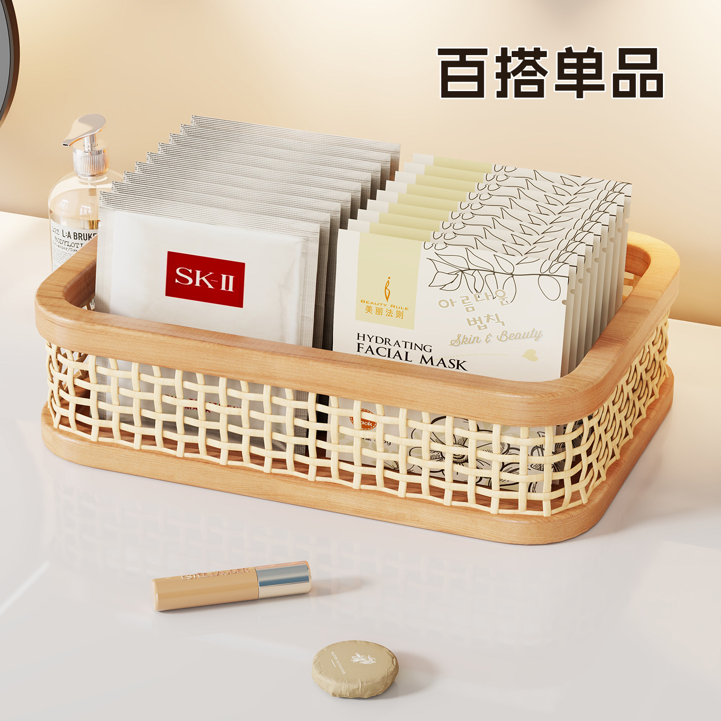 学生宿舍桌面实木面膜收纳盒化妆品护肤品储物盒大容量整理神器架