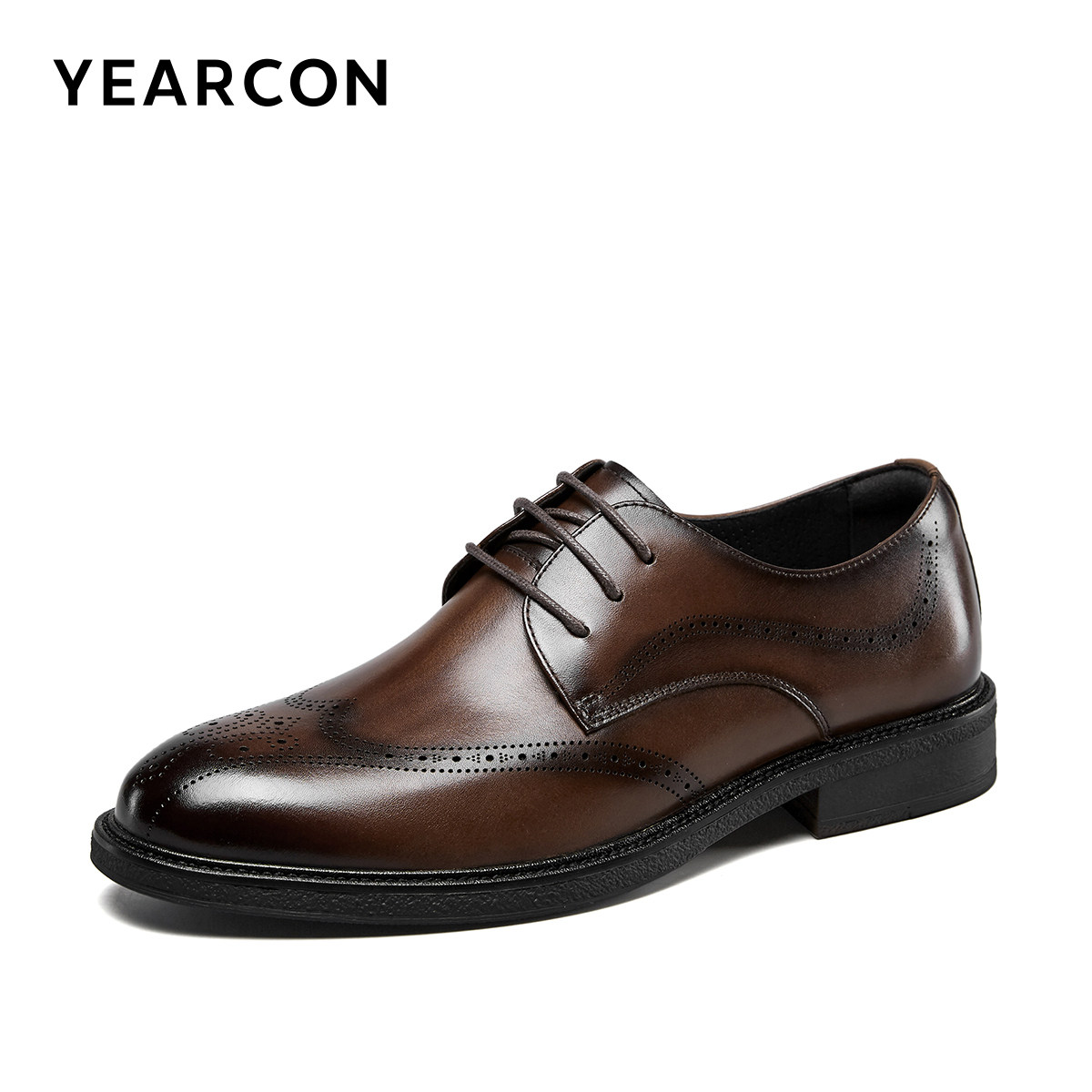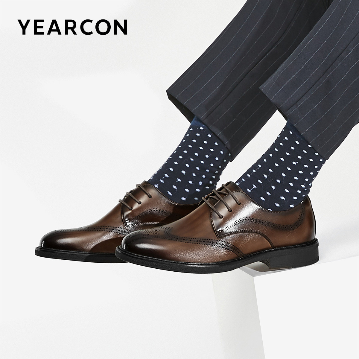 意尔康男鞋春秋季男式真皮正装西装皮鞋男士商务布洛克英伦风