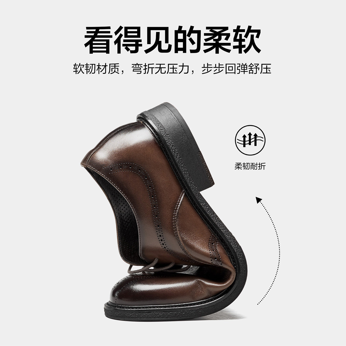 海澜之家男鞋秋冬季正装商务真皮布洛克内增高皮鞋男款加绒德比鞋