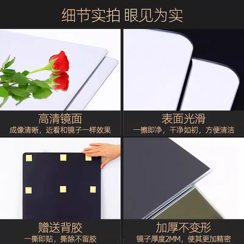 衣柜门全身镜贴墙亚克力自粘软镜子门后穿衣镜高清免打孔隐藏镜面