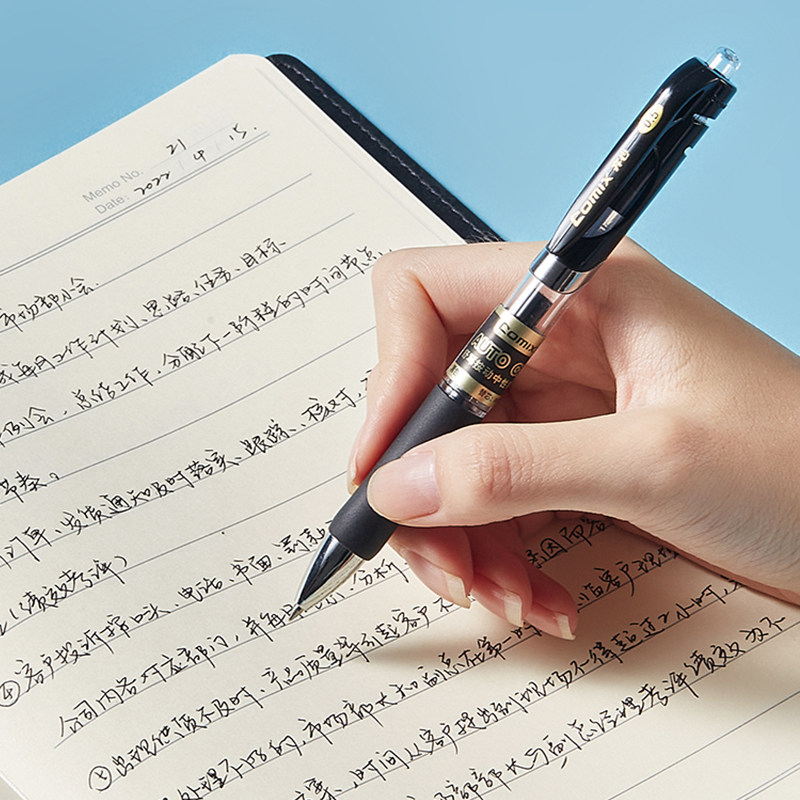 晨光按动中性笔黑色笔速干顺滑高颜值红蓝碳素笔考试办公用签字笔