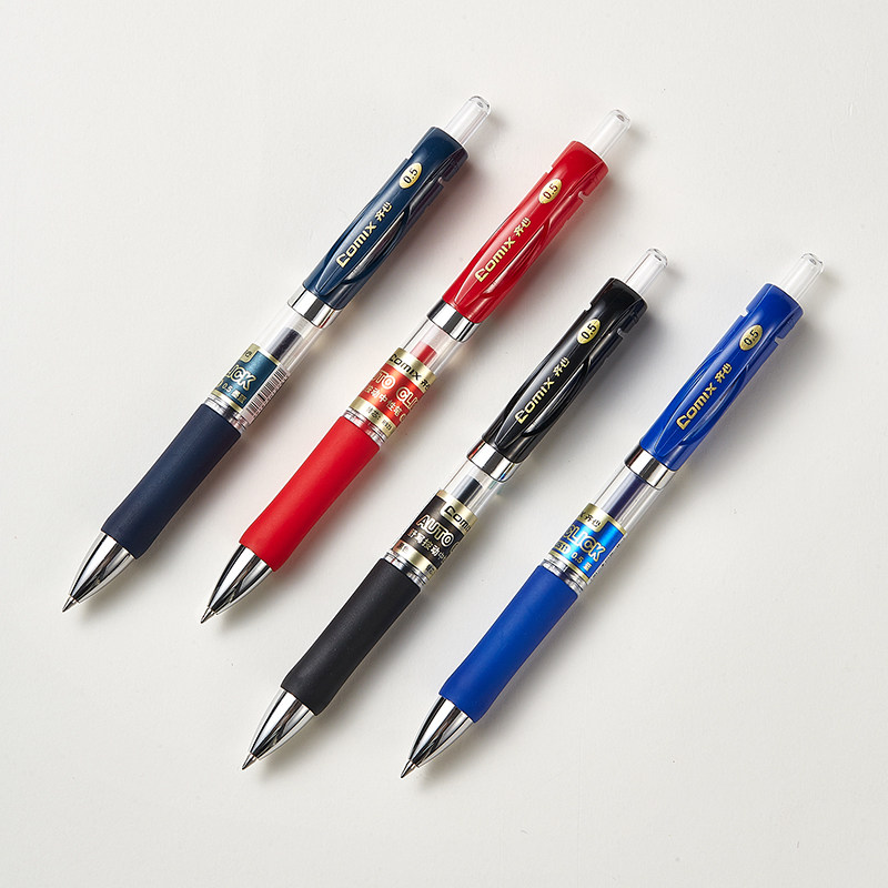 齐心K3511按动中性笔 学生用黑色碳素笔办公文具0.5mm芯子弹头水笔签名笔批发考试专用笔教师批改红笔圆珠笔