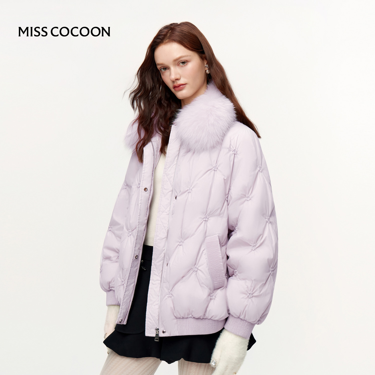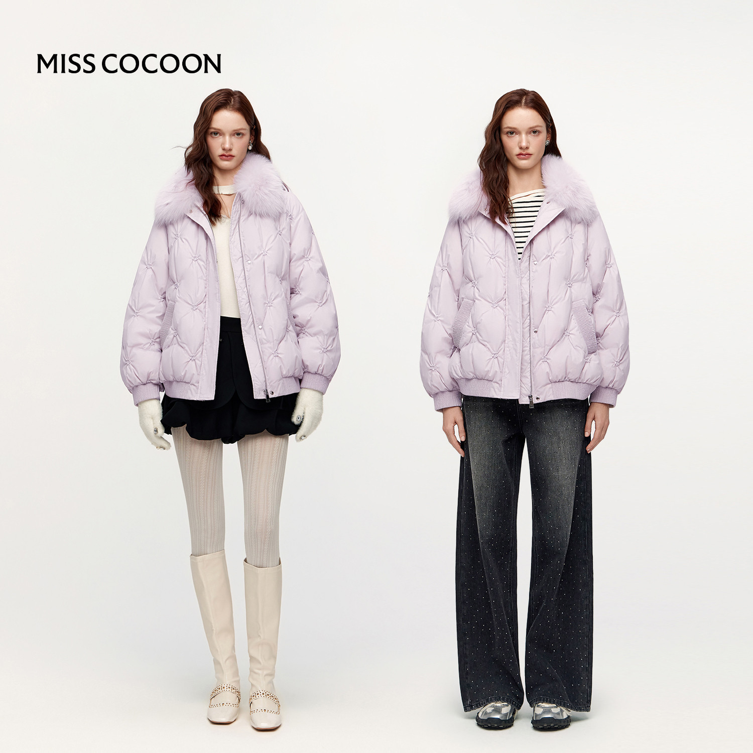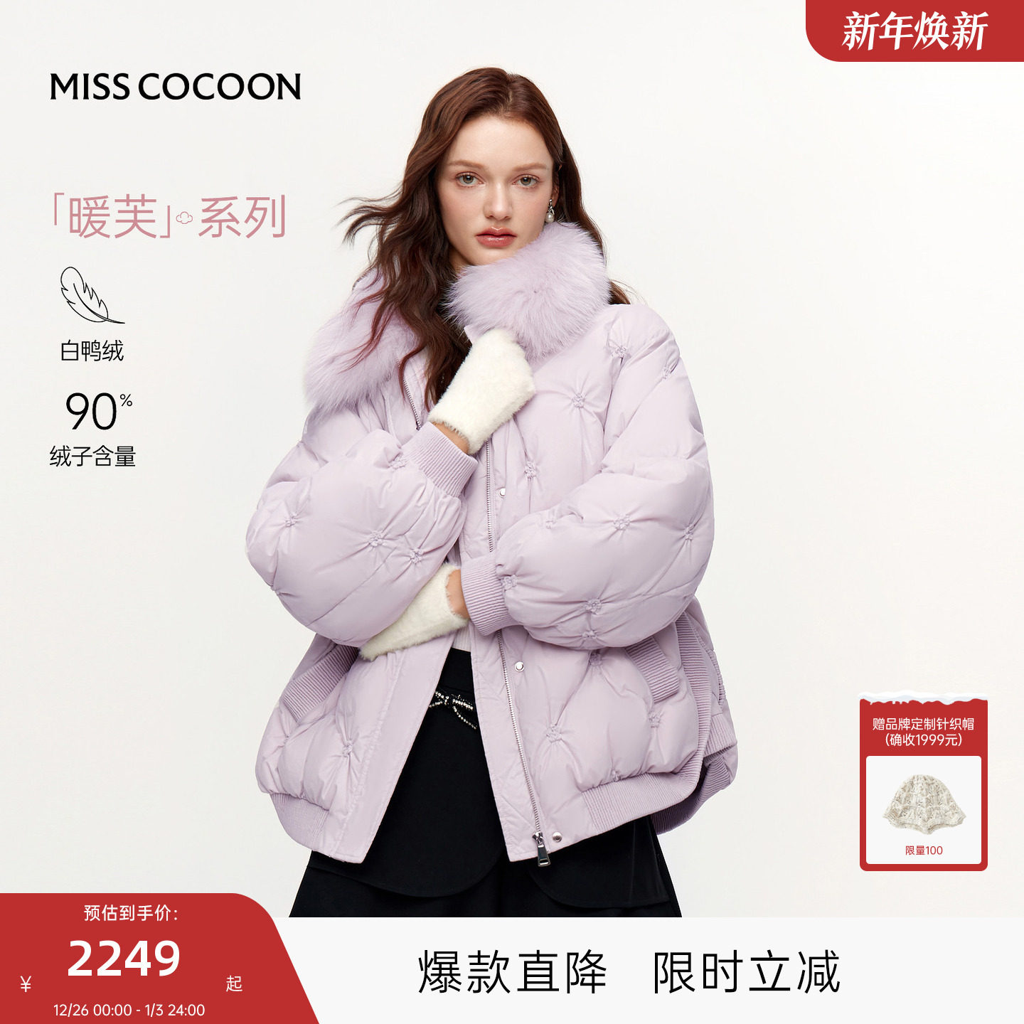 MISSCOCOON可可尼外套女2025冬季新款短款大毛领90白鸭绒羽绒服