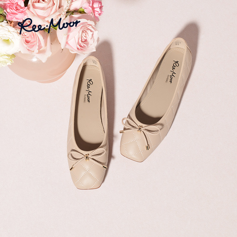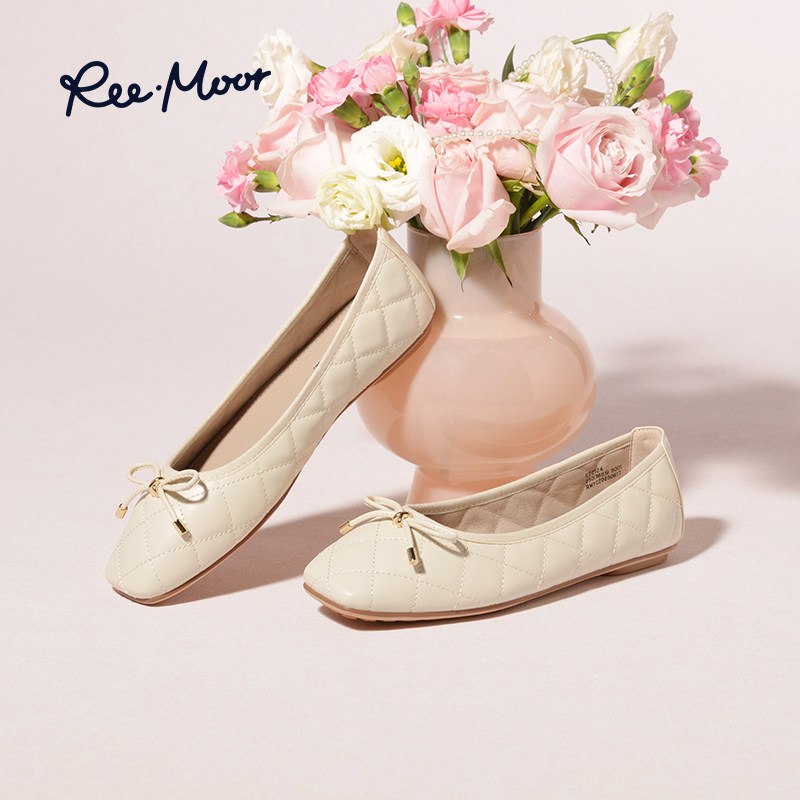 REEMOOR睿慕白色单鞋女2026新款芭蕾平底鞋浅口蛋卷鞋软底豆豆鞋