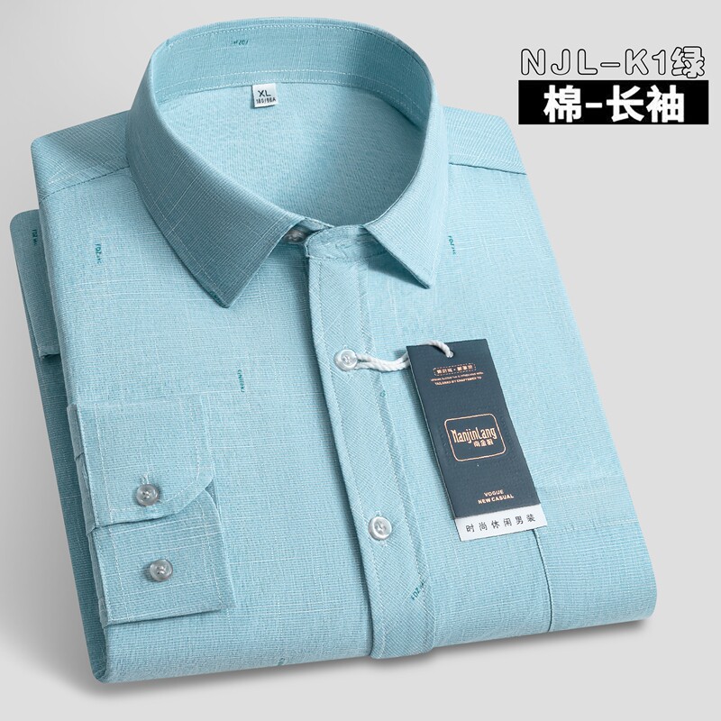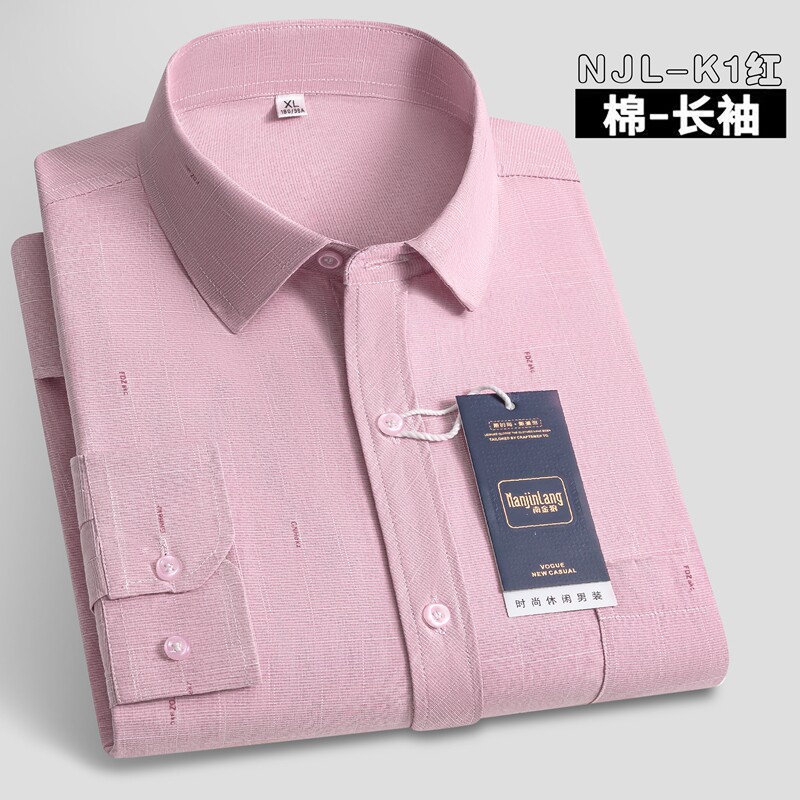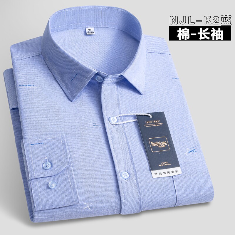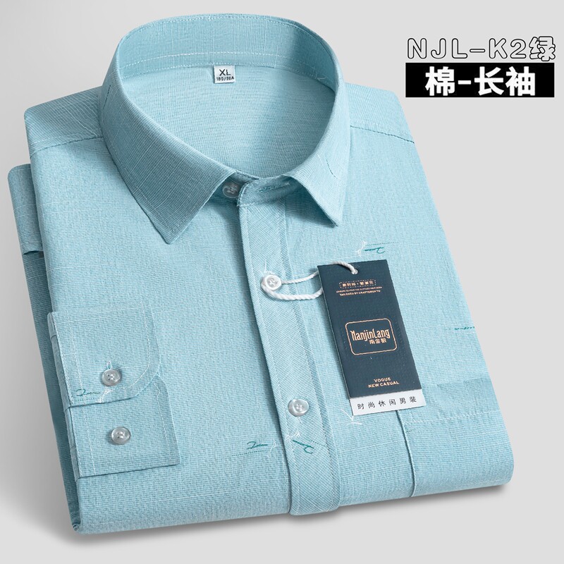 男士100纯棉长袖衬衫商务免烫百搭衬衣中老年爸爸装抗皱有口袋
