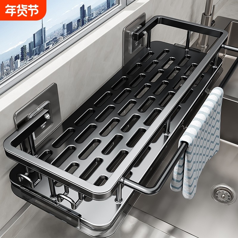 厨房置物架抹布架免打孔壁挂式沥水收纳架子水槽挂篮神器多功能
