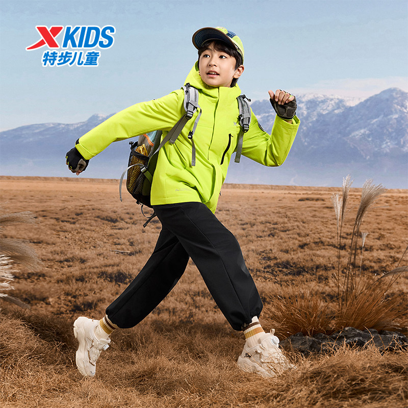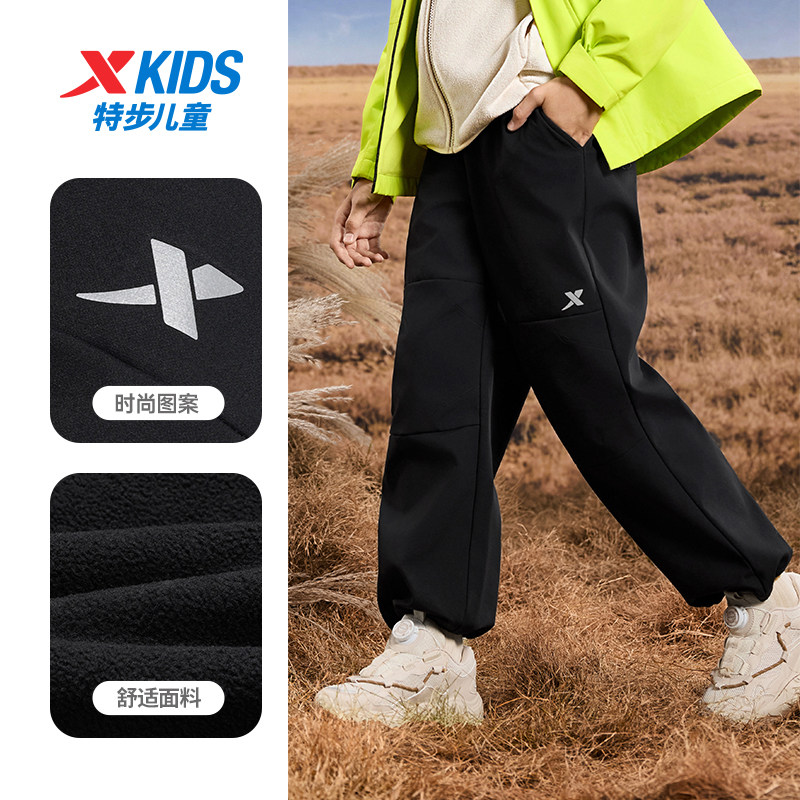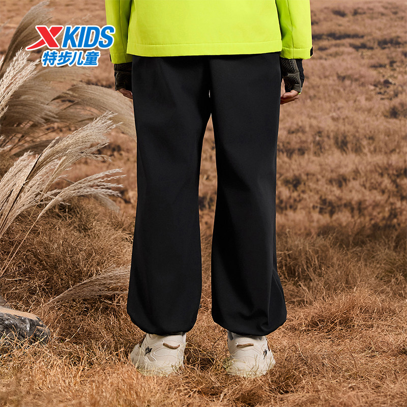 特步童装秋季新款男童女童中大童运动束脚裤防水防风儿童梭织长裤