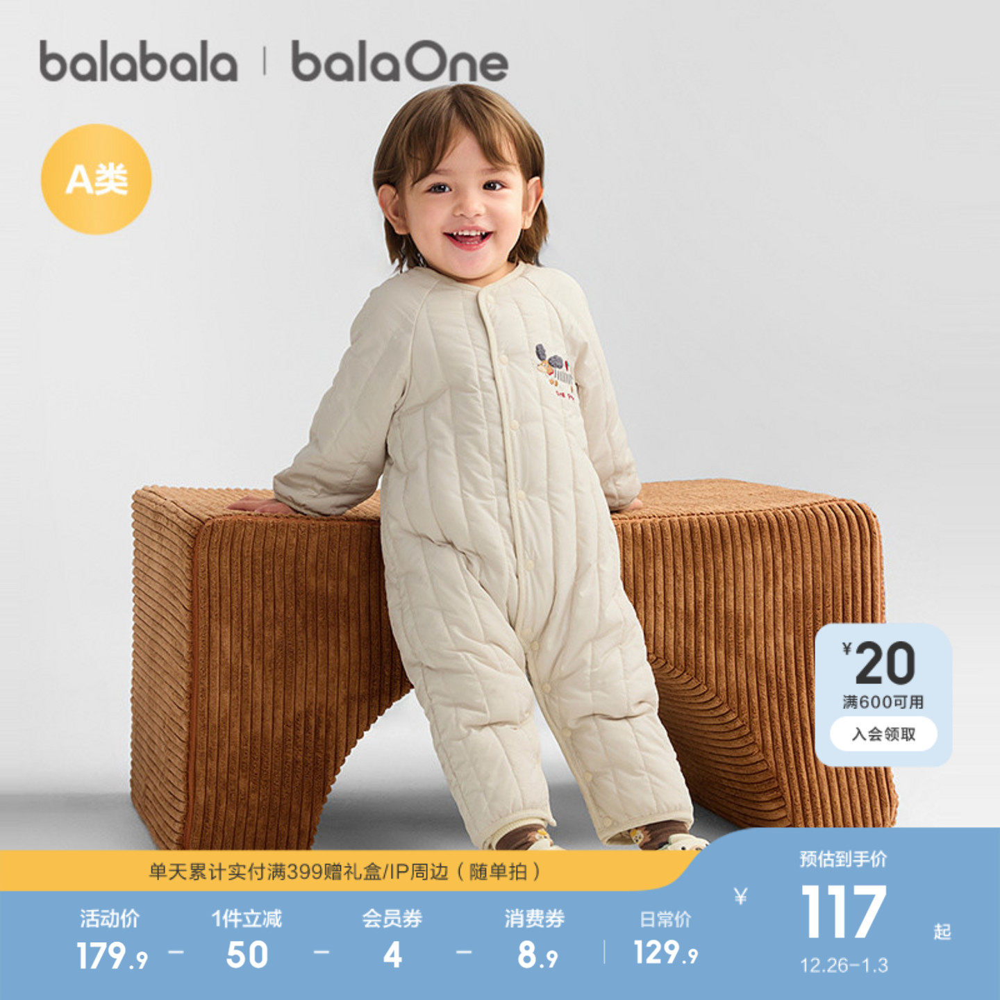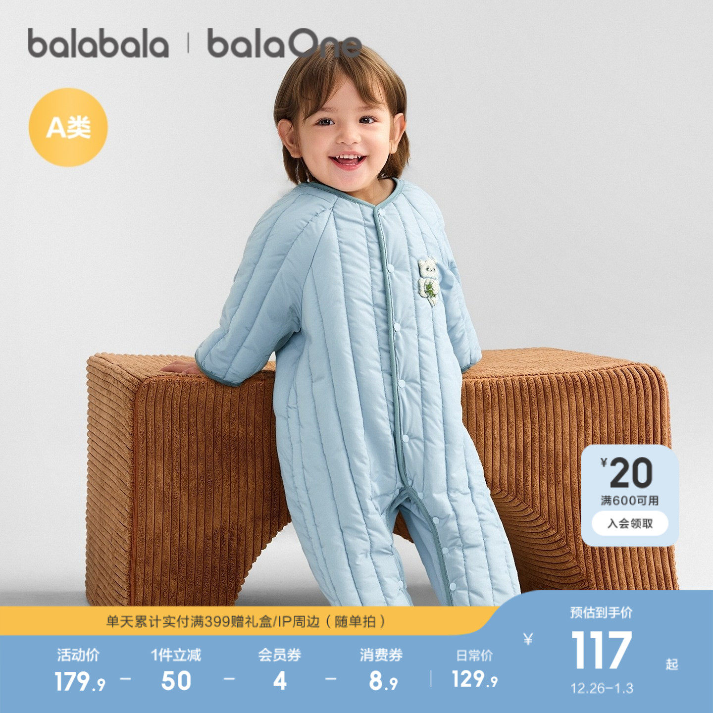 巴拉巴拉新生婴儿连体衣宝宝衣服棉服爬服哈衣2025新款简约时尚萌