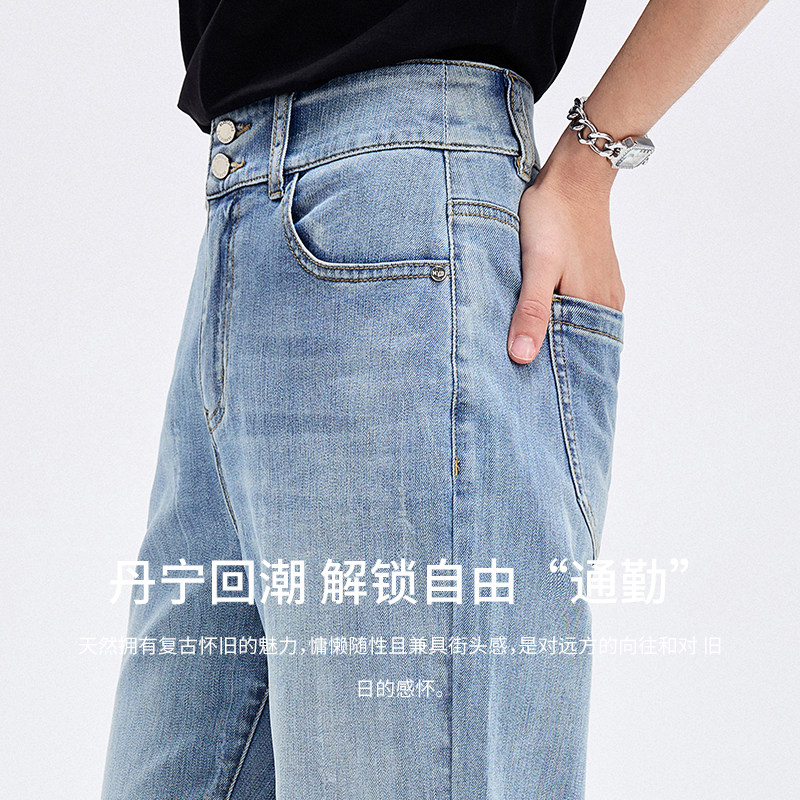四面弹丹宁色牛仔阔腿裤25年新款宽松显瘦牛仔长裤89173