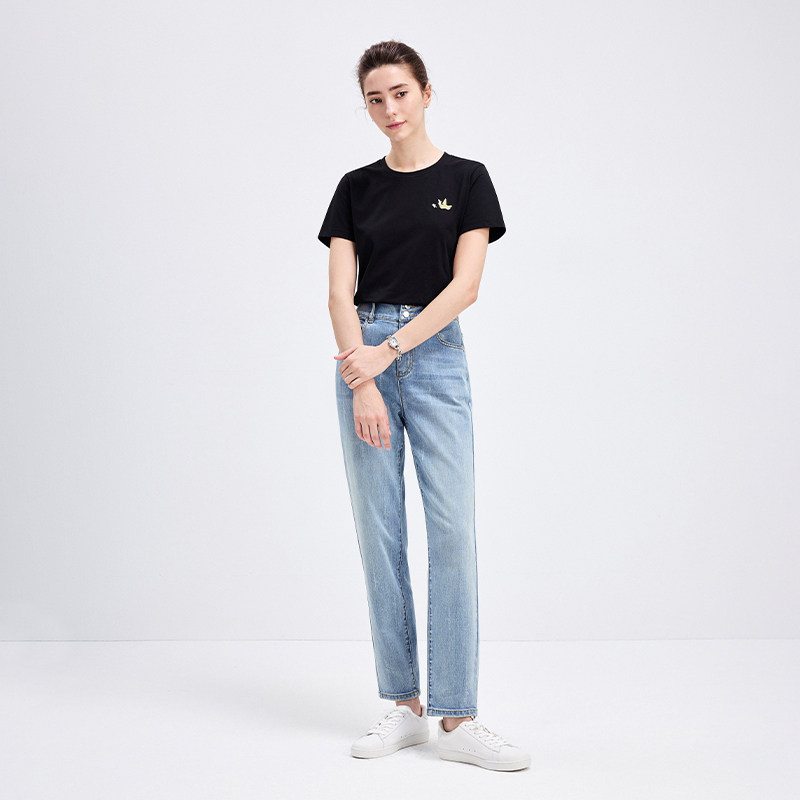森柔|森马牛仔裤女春季含莱赛尔做旧长裤舒适基础复古百搭阔腿裤