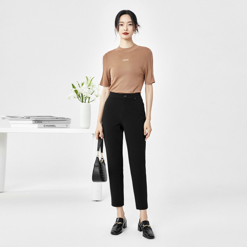 NAERSI/娜尔思松紧九分小脚裤女25早秋铅笔裤时尚修身休闲裤