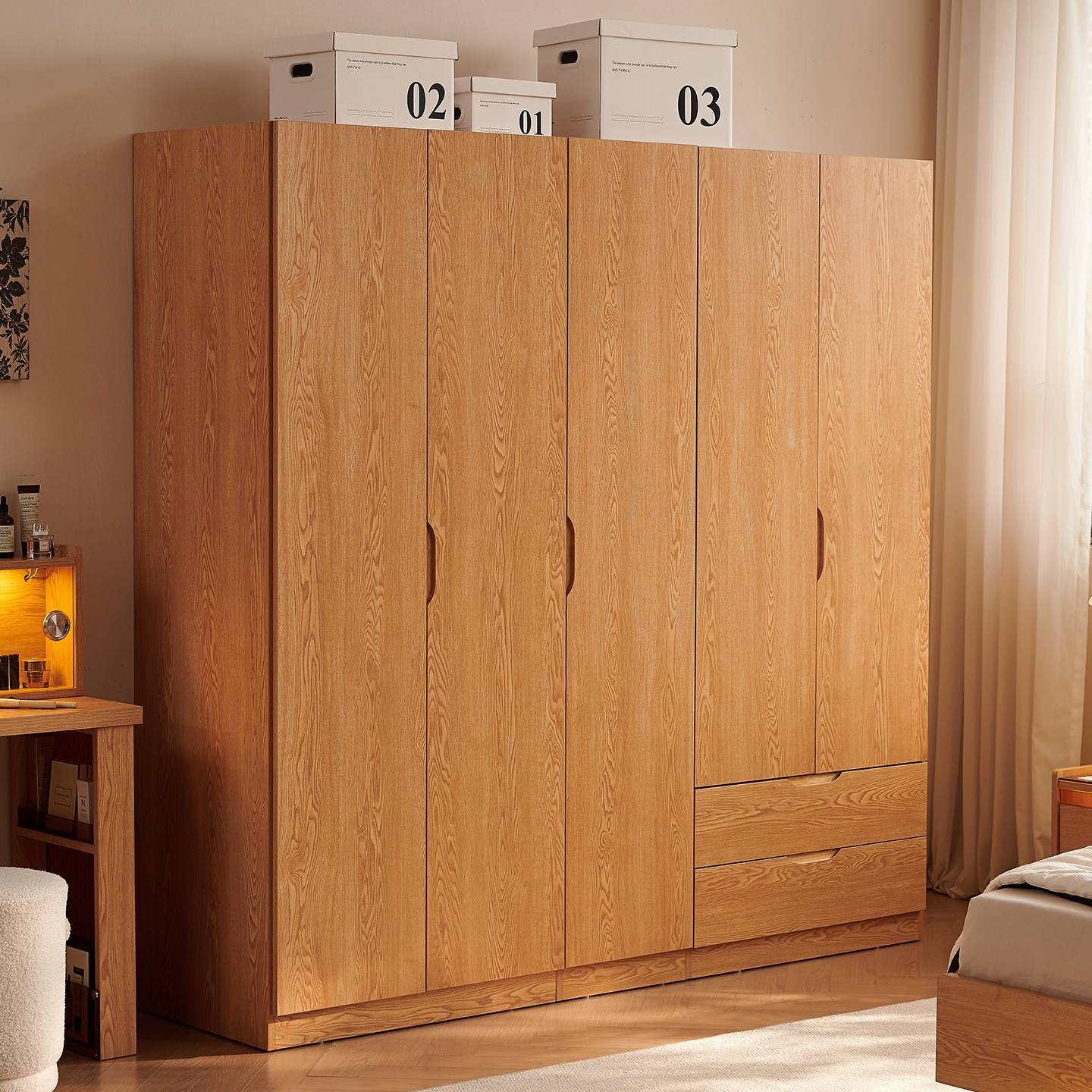 木兜家具平开门衣柜橡木衣柜实木质组合柜子主卧室家用衣服收纳柜