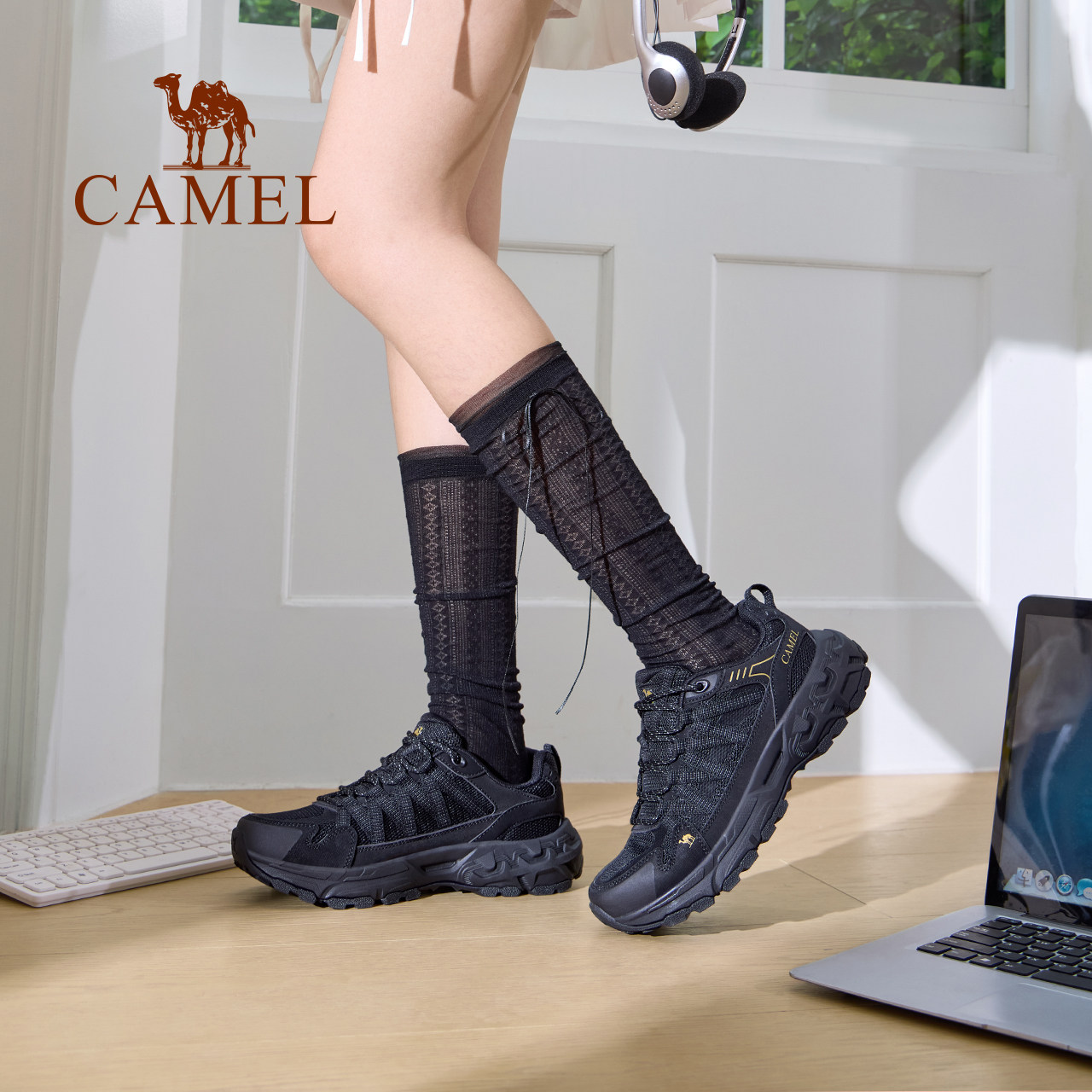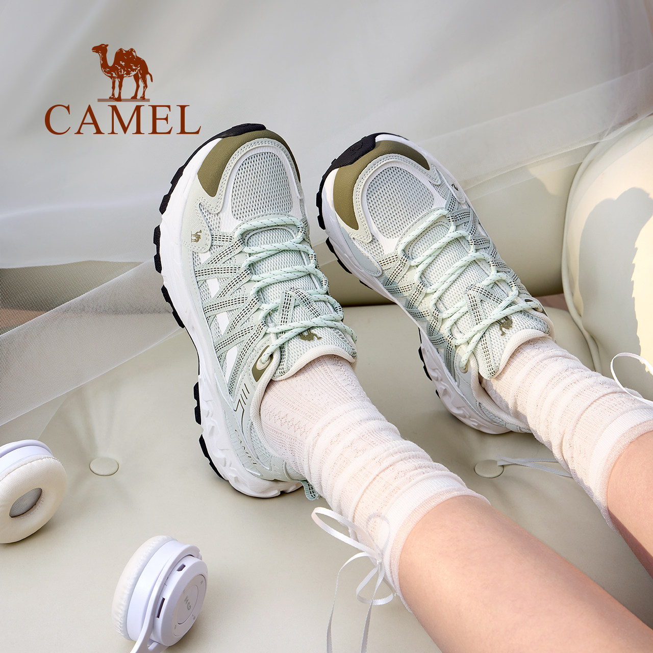 骆驼盘龙登山鞋女防滑秋冬户外透气网面耐磨轻便运动鞋男徒步鞋子