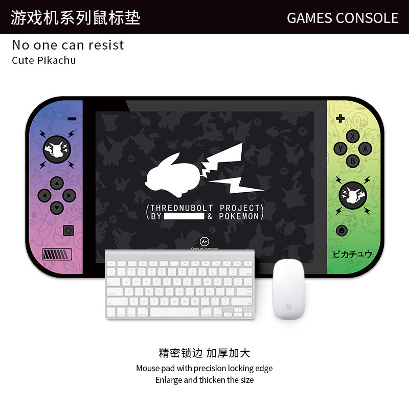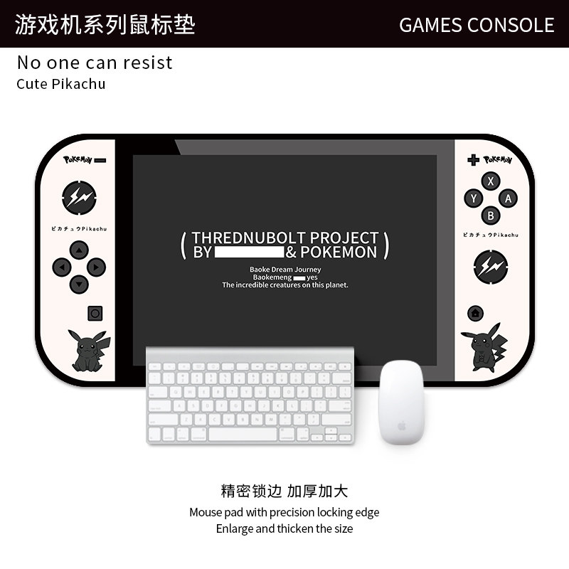 鼠标垫超大游戏电竞个性办公键盘桌垫锁边皮卡丘游戏机高颜值男女