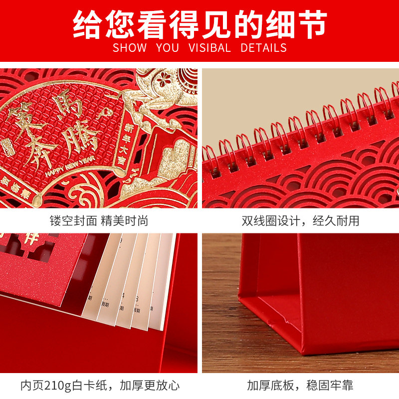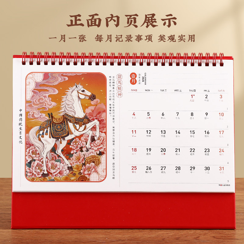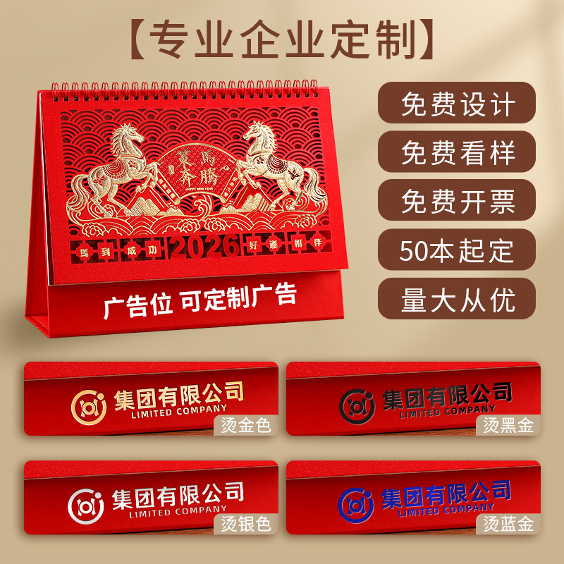 台历2026年新款马年十四张喜庆精雕工艺日历中国风红色备忘录记事打卡桌面月历定制logo印刷公司企业广告商务