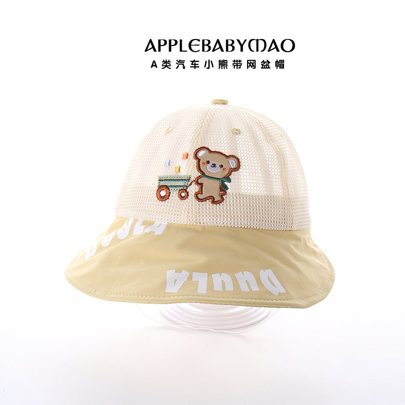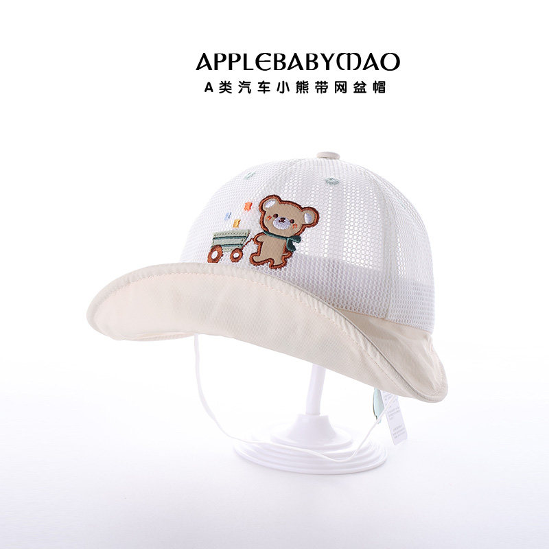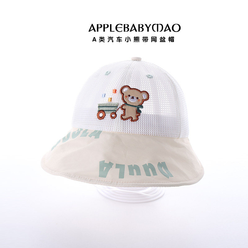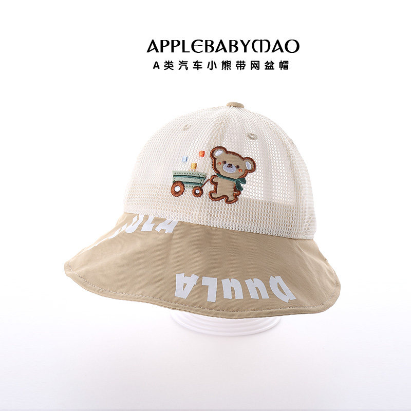 嘟嘟啦夏季男女宝宝帽子儿童汽车小熊渔夫帽可调节大帽檐遮阳凉帽