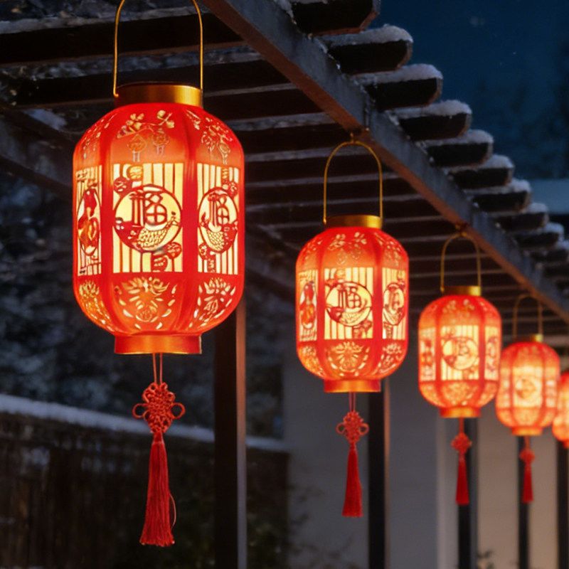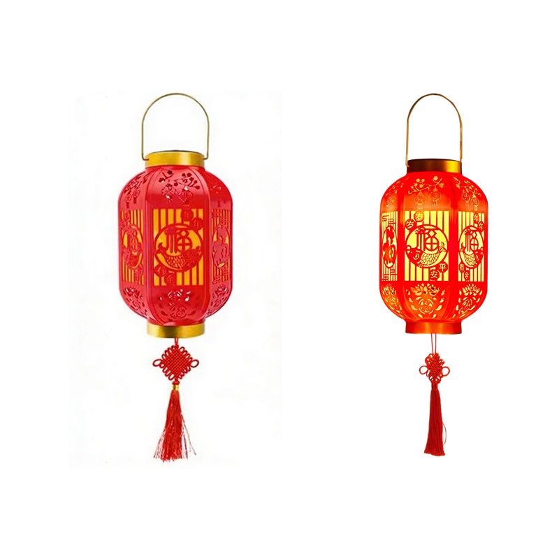 太阳能红灯笼新款过年元小灯笼装饰挂饰庭院阳台福字挂树吊灯户外