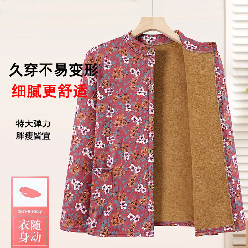 中老年妈妈棉衣女棉服奶奶保暖打底家居服内搭防寒加绒内胆秋冬装
