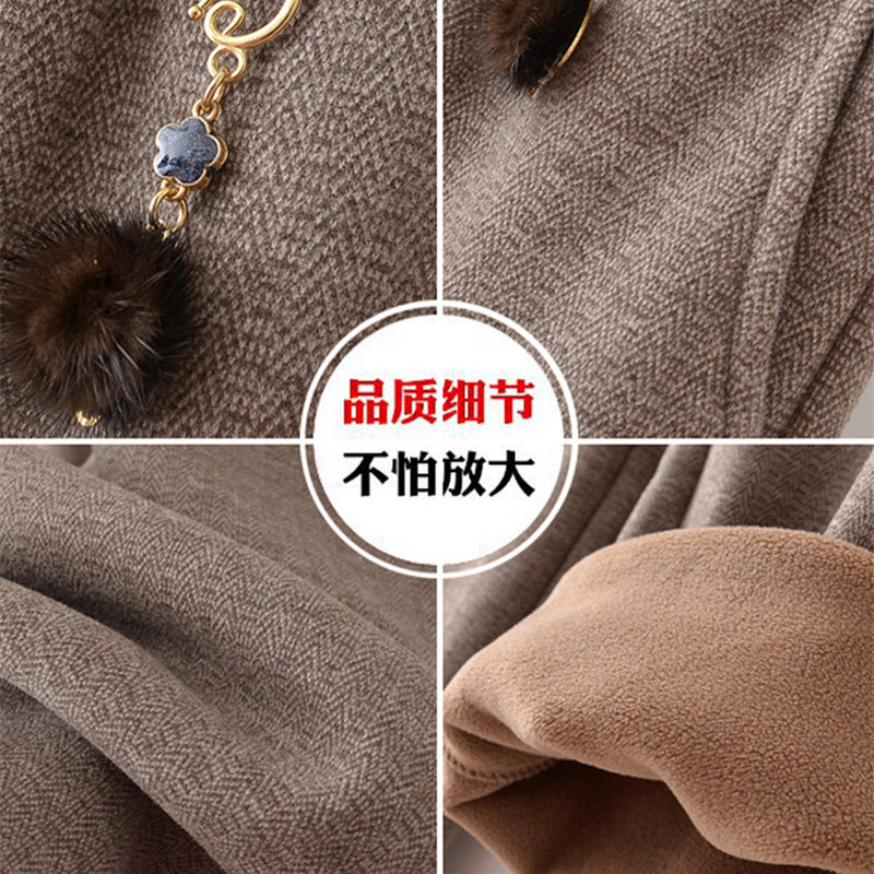 妈妈秋冬季加绒外套女中老年人大码宽松翻领棉衣三层加厚棉服上衣