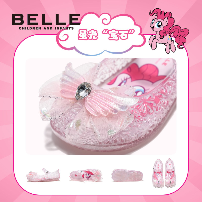 百丽童鞋2026夏新款小马宝莉联名款女童宝石水晶鞋公主鞋儿童凉鞋