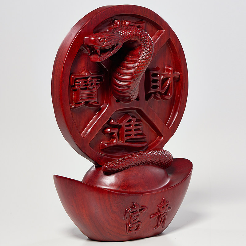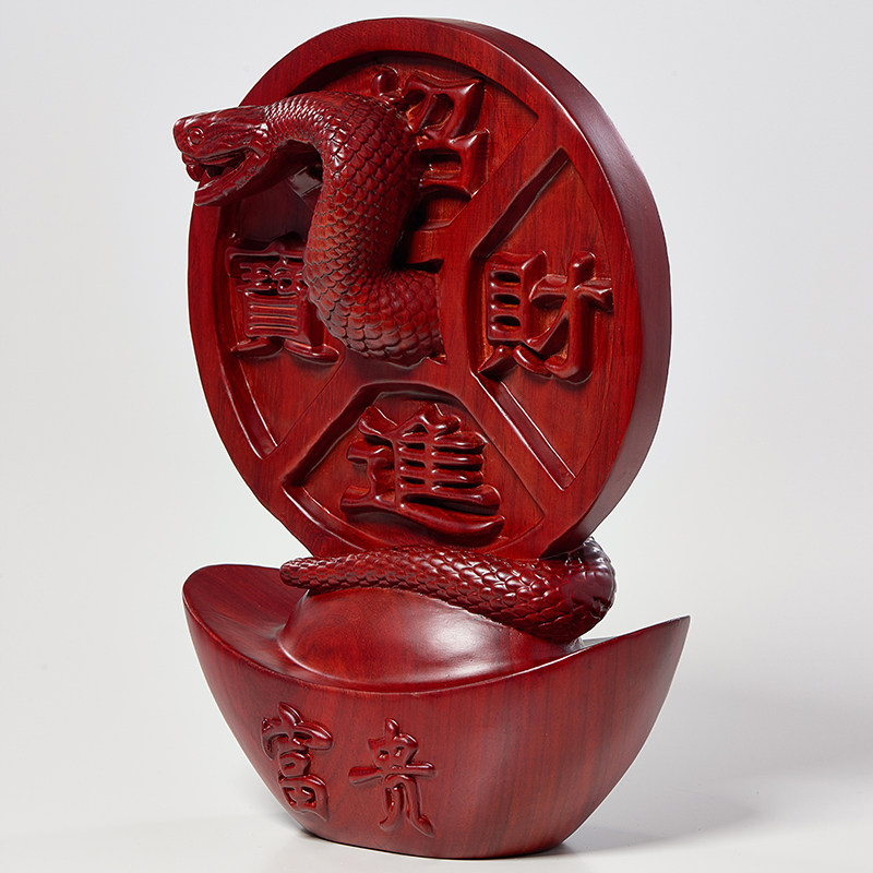 蛇摆件木质十二生肖蛇摆件工艺品创意礼品家居店铺装饰桌面送礼