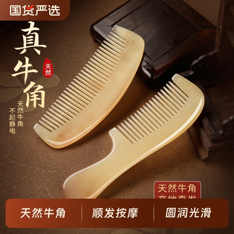 牛角梳子天然头部按摩儿童经络梳防长短发男女静电顺发内蒙古桃木