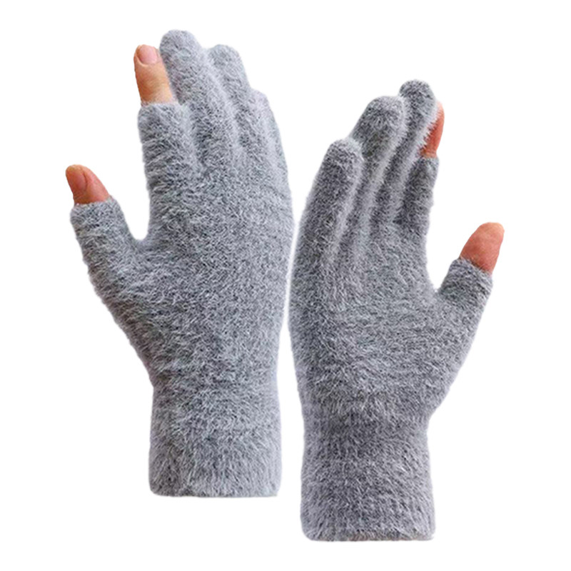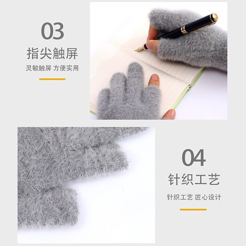 露二指可以写字的手套女秋春季加绒保暖漏指骑行开车男仿貂毛学生