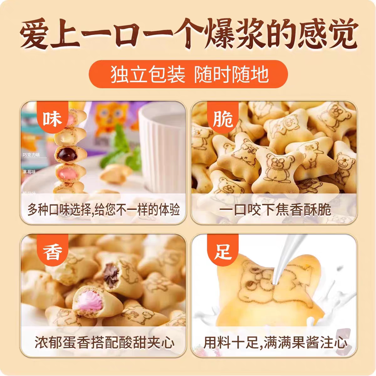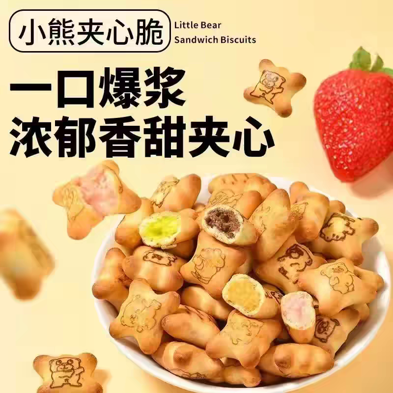 小熊注心饼干夹心饼干小包装零食休闲儿童食品巧克力多种美味草莓