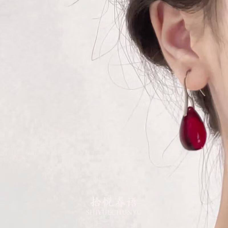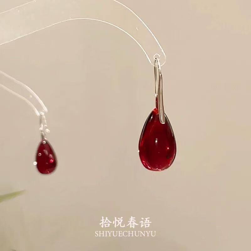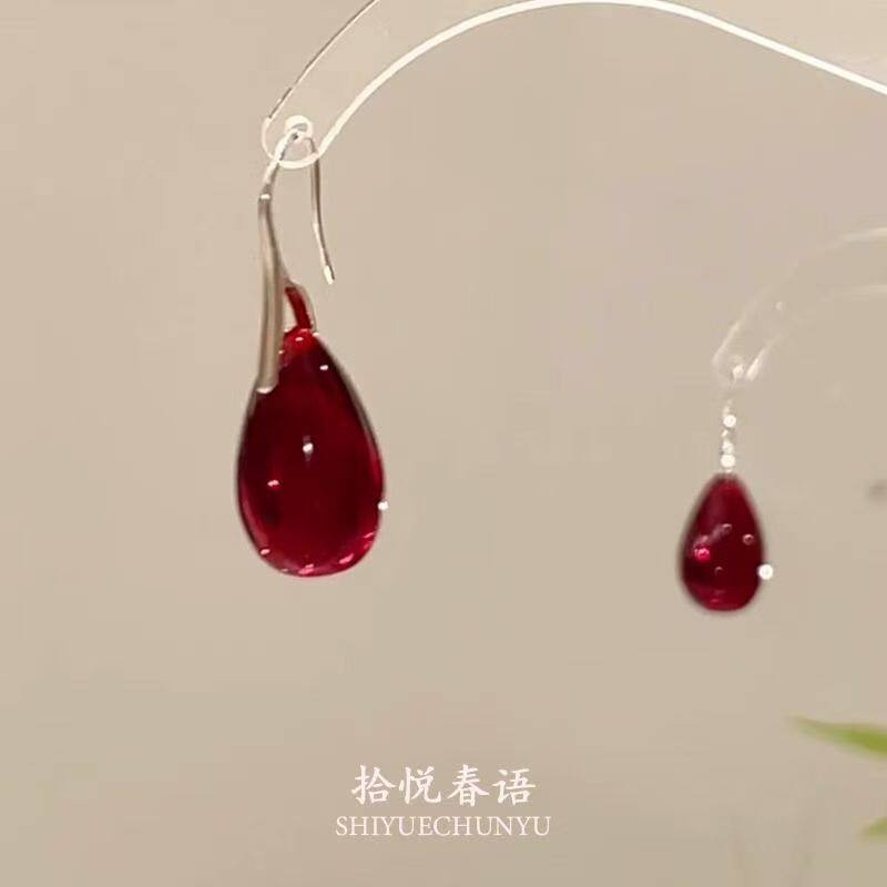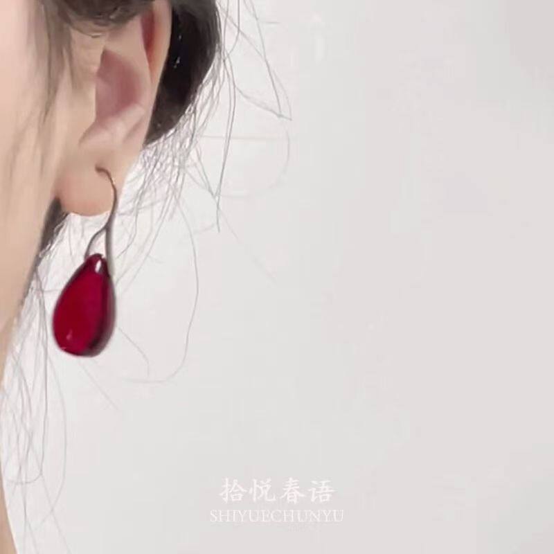 「红泪偷垂」复古红色水滴吊坠耳环秋冬新中式清冷感气质显白耳饰