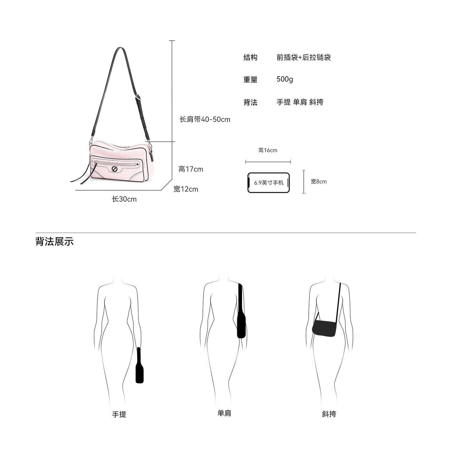【新品】JTB极光吐司包.小众粉色腋下包女相机包机车包斜挎手提包