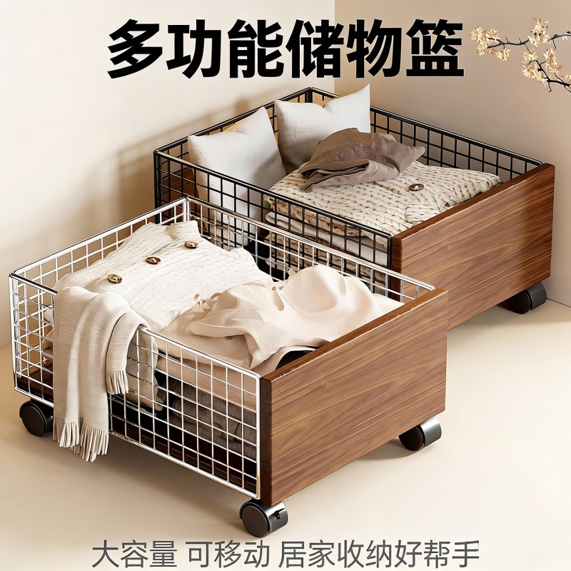 浴室柜下脏衣篓家用脏衣服中古风可移动卫生间洗衣篮袜子收纳筐子