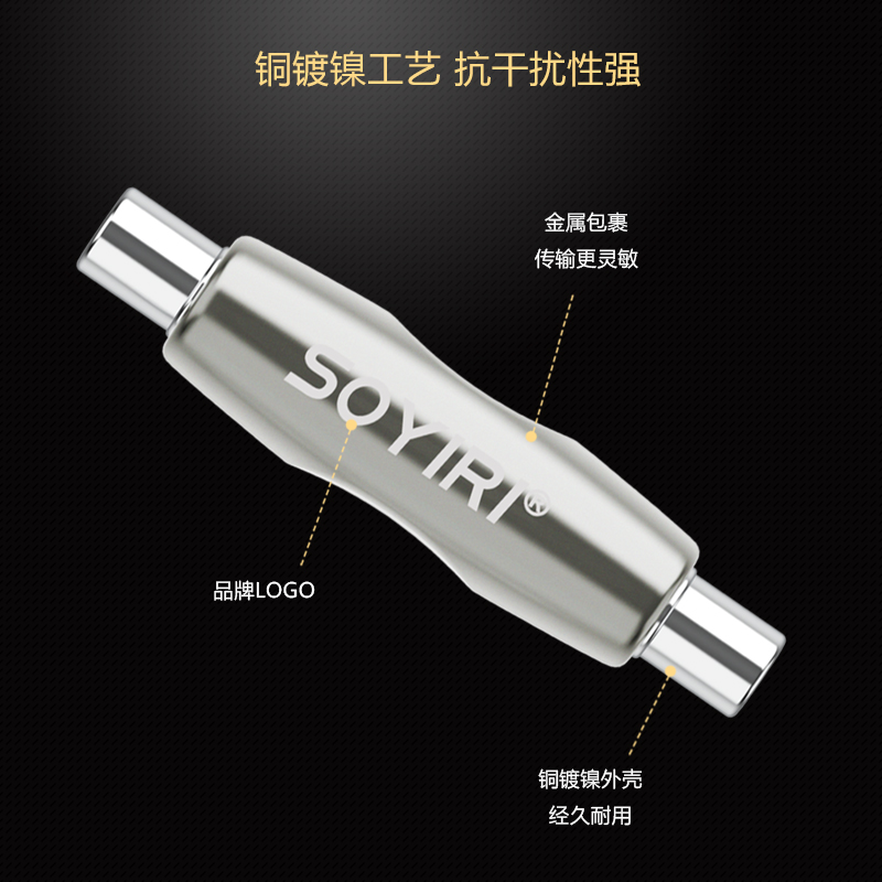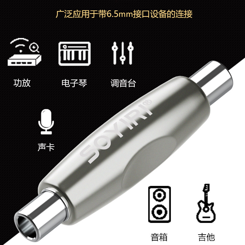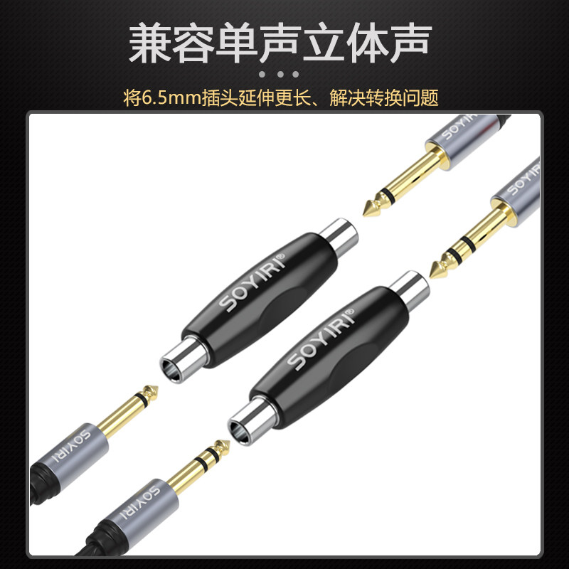 SOYIRI 铜大二三芯6.35mm母对母甬单声立体声6.5MM音频线延长对接插头电吹管吉他话筒音箱线加长转接直通插头