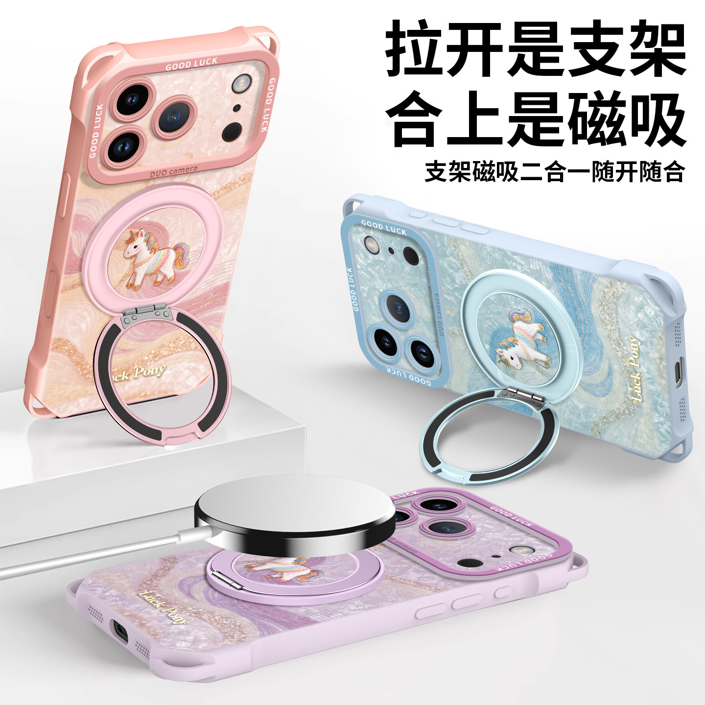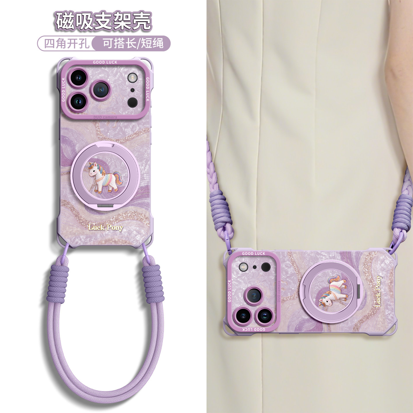 适用苹果17promax手机壳iPhone17pro新款17带挂绳iPhone16磁吸支架16p斜挎背带15四角15p防摔14p挂脖女保护套