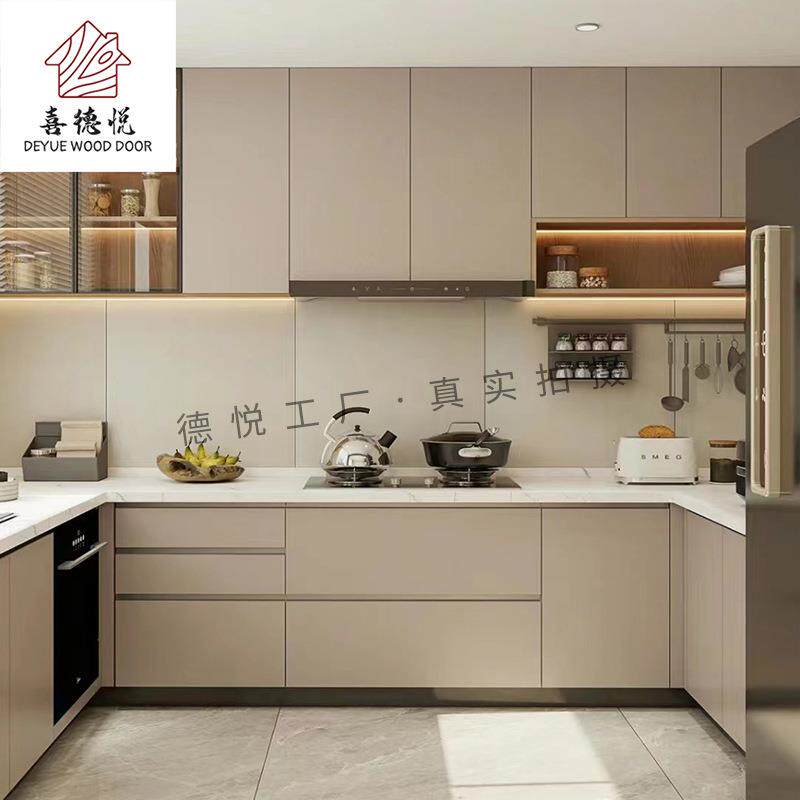 整体厨房橱柜定 制U型吊柜碗柜石英石台面家用现代简约风厨房