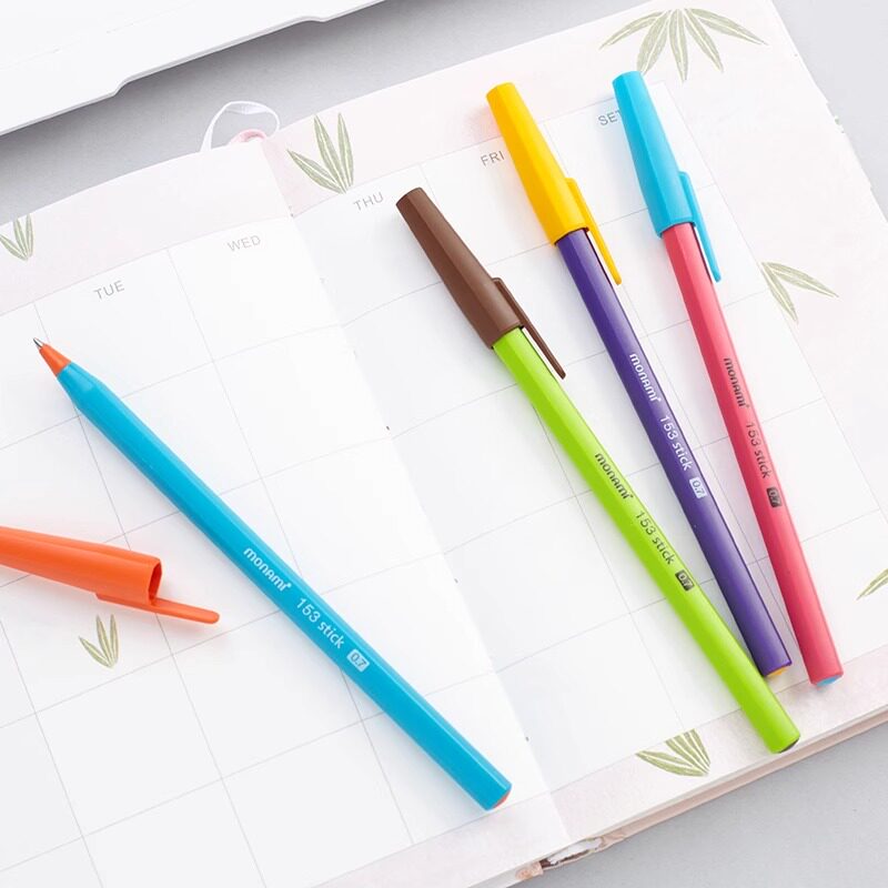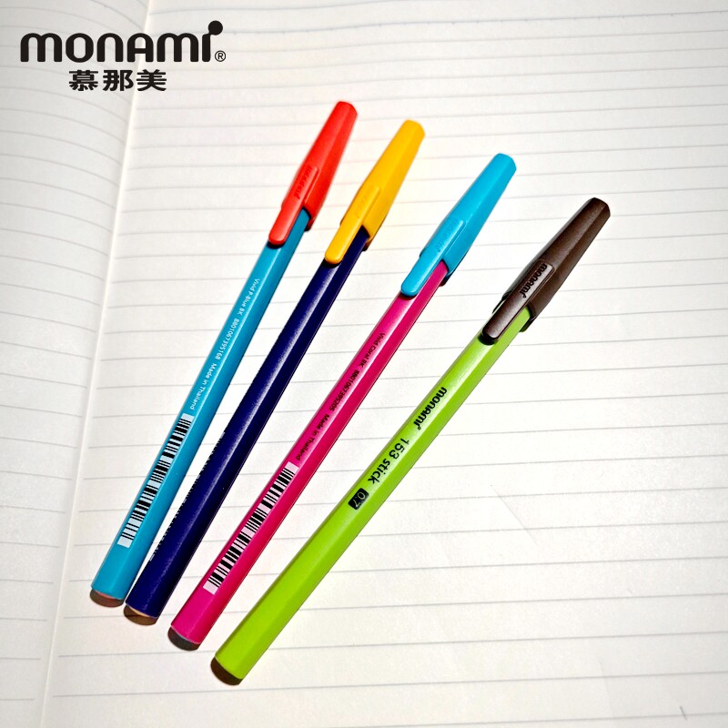 韩国慕那美monami进口六角刷题圆珠笔0.7mm撞色设计中油签字笔书写顺滑刷题慕娜美黑色复古彩杆原子笔文具153