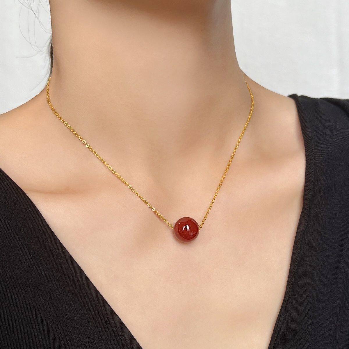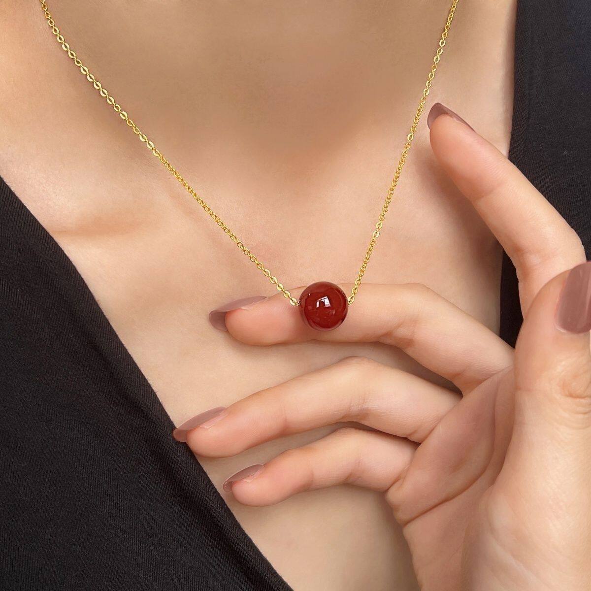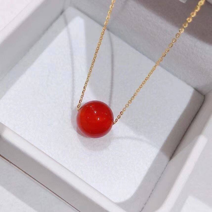 本命年红玛瑙吊坠转运珠项链女新款本命年锁骨链相思豆路路通颈链