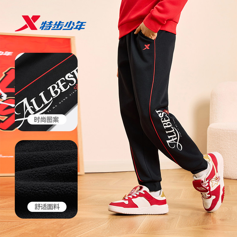 特步童装新款小中大童保暖休闲卫裤儿童运动女童亲肤学生针织长裤