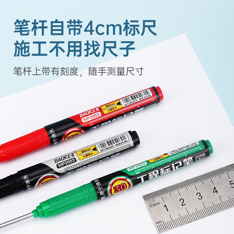 宝克长头记号笔水性油墨湿布可擦木工划线笔瓷砖无痕装修家具画线水电工安装工地专用深孔工程标记长嘴勾线笔