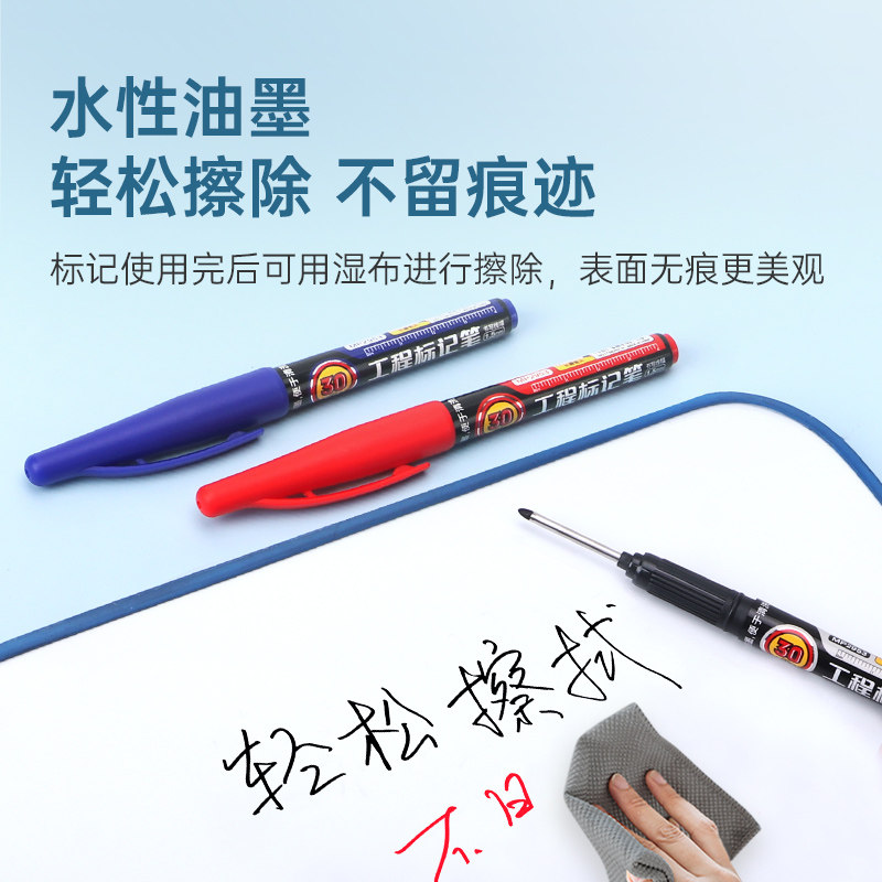 晨光长头记号笔油性木工专用划线笔工地瓷砖画线笔长嘴黑色笔深孔划线加长打孔防水防油速干顺滑深孔计号脱帽