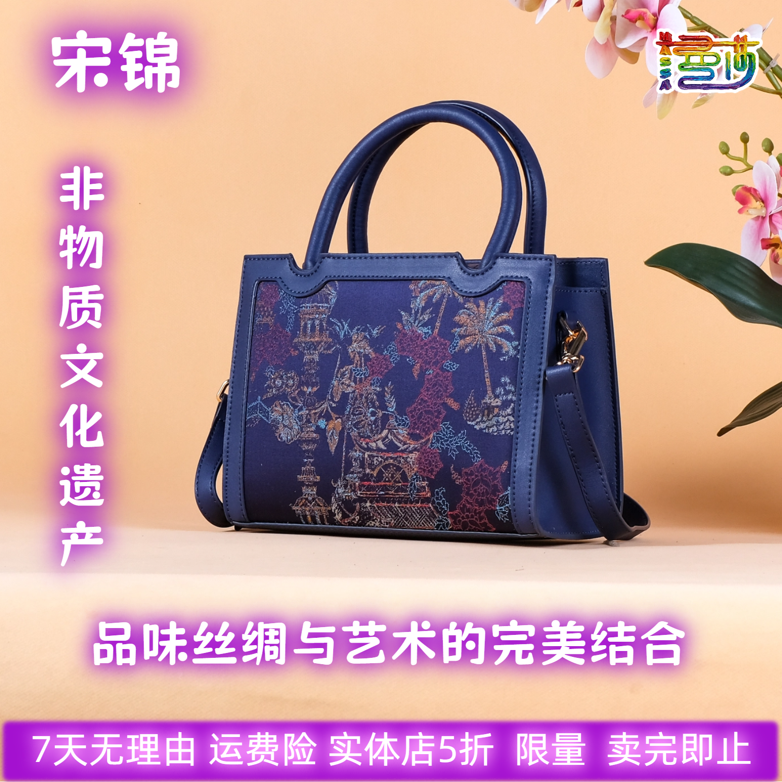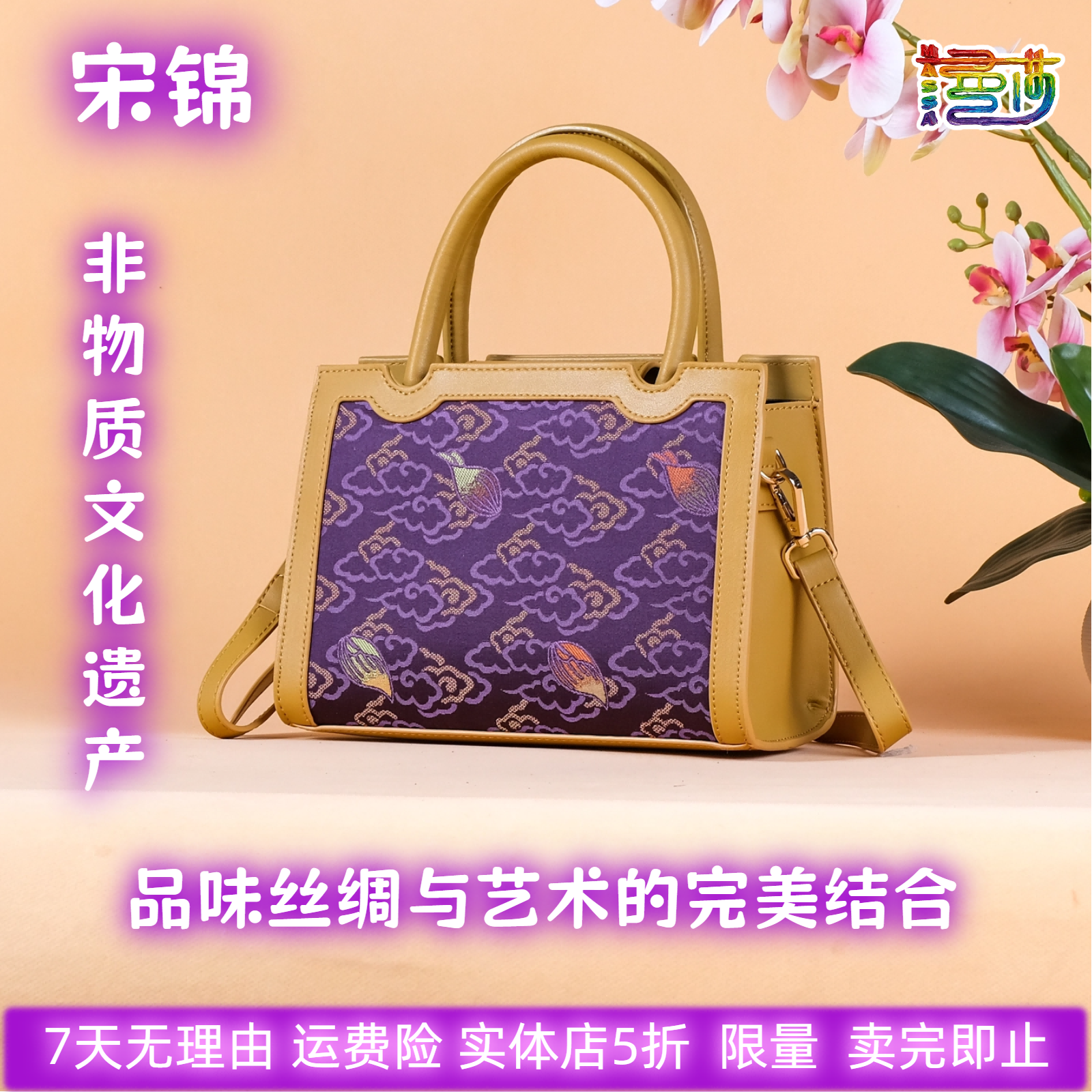 中国风宋锦香云纱手提单肩斜挎绣花真丝真皮