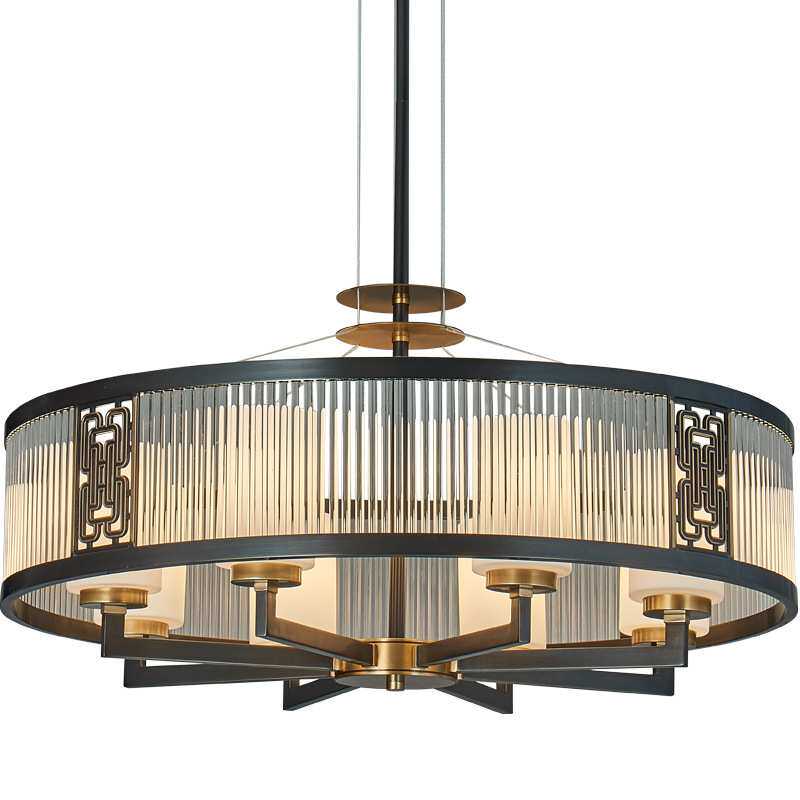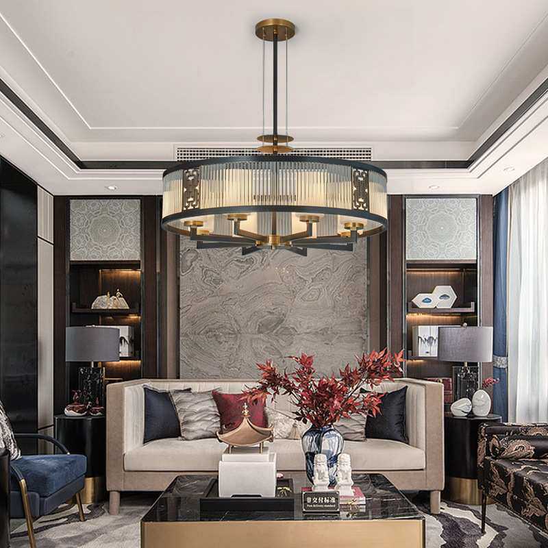 新中式现代轻奢客厅餐厅卧室灯具简约灯饰中国风圆形水晶全铜吊灯