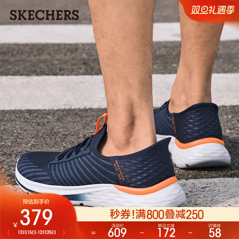 Skechers斯凯奇闪穿鞋秋冬男鞋运动休闲鞋一脚蹬网面健步鞋