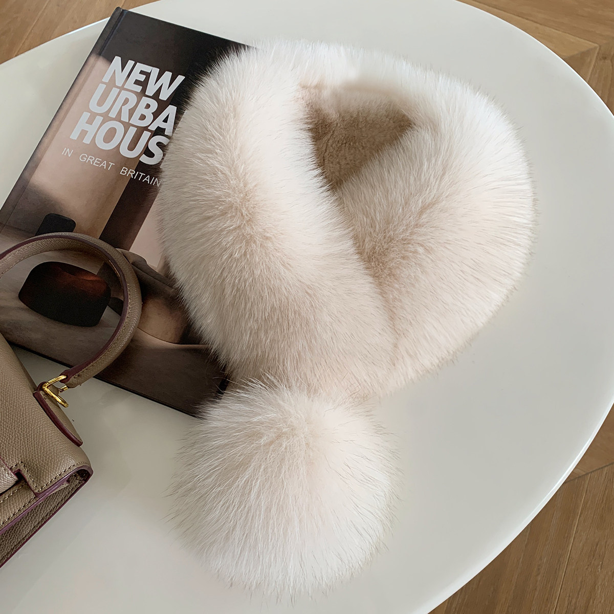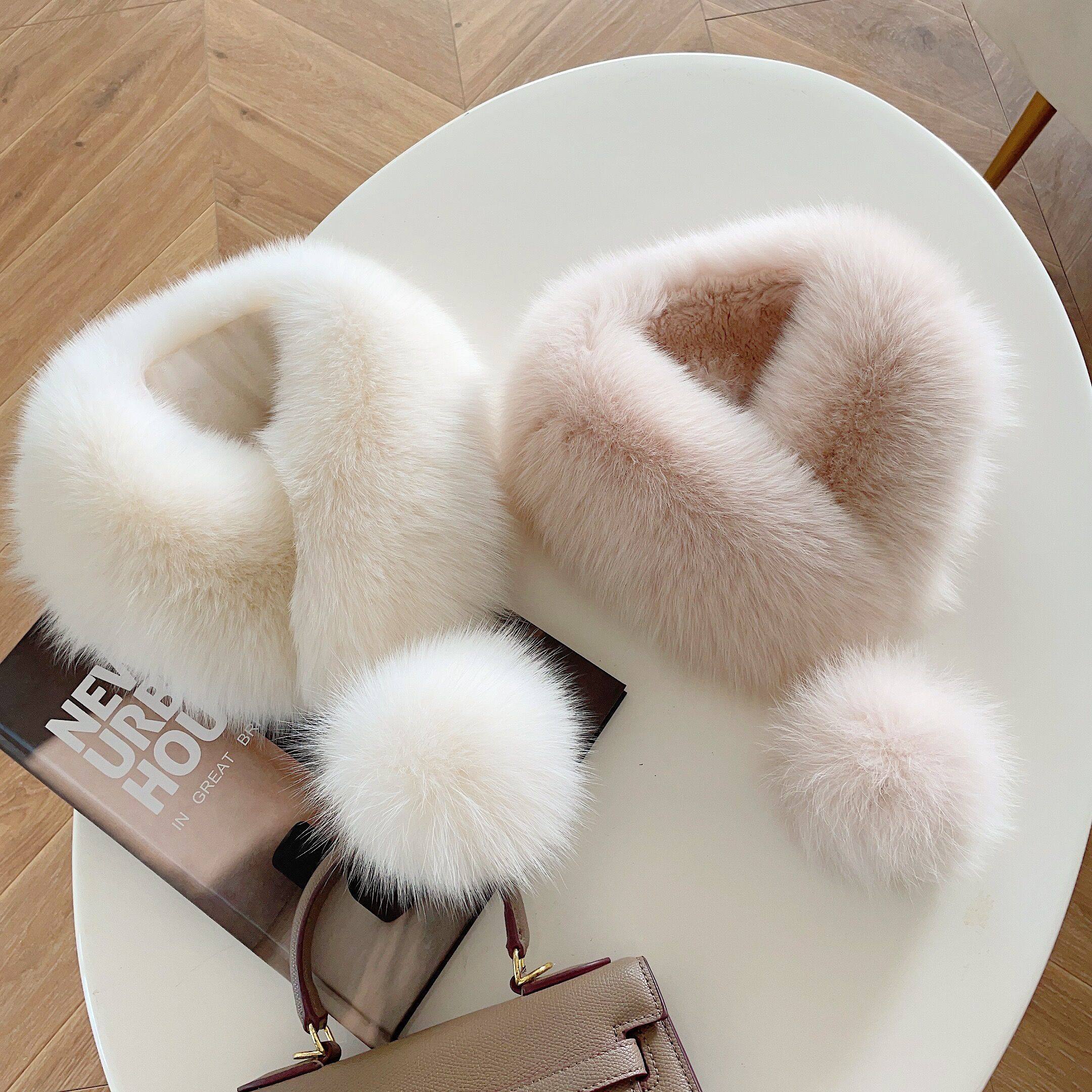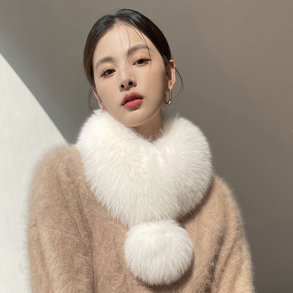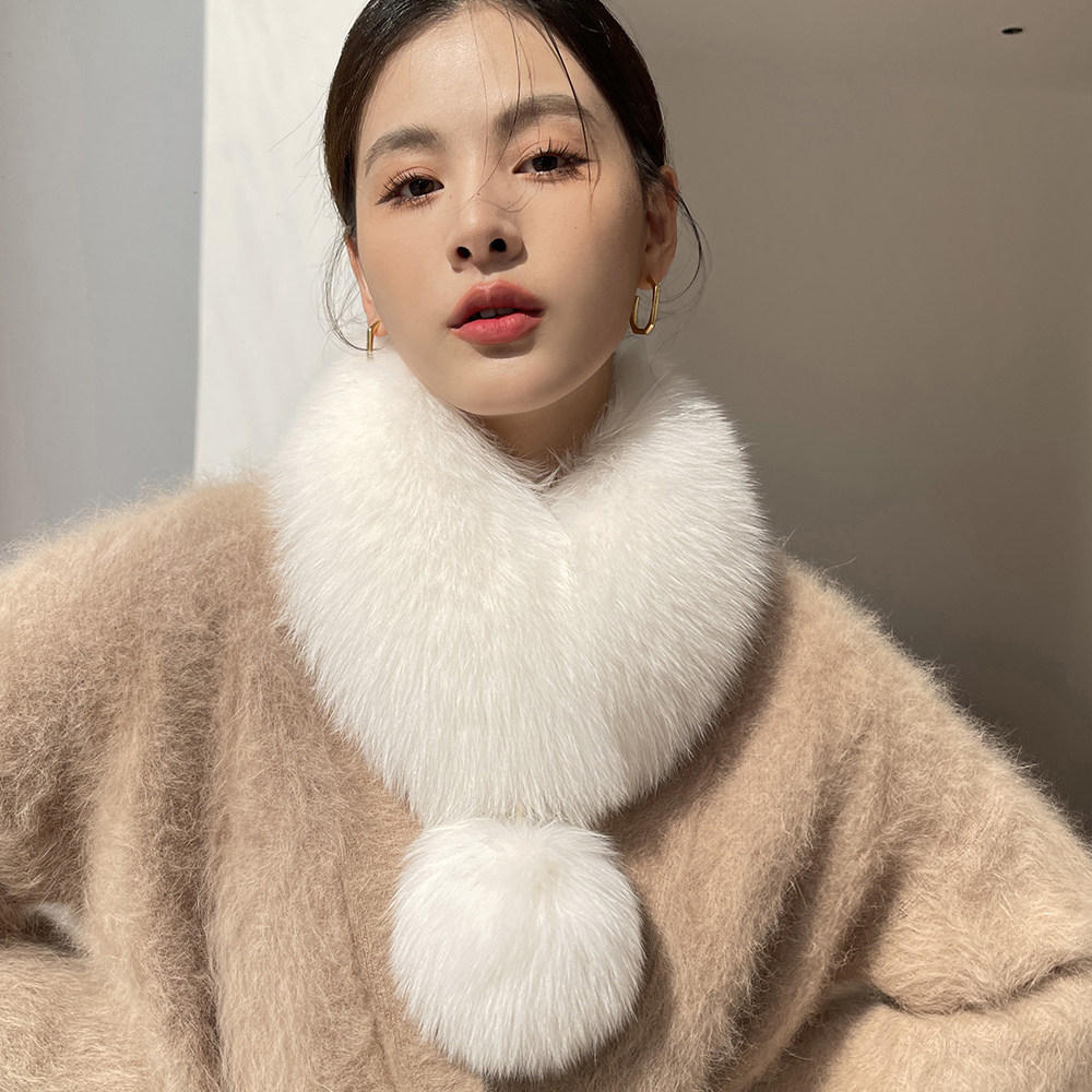 新款韩版狐狸毛围脖女冬季大毛球双面围巾磁吸扣真毛毛领子皮草
