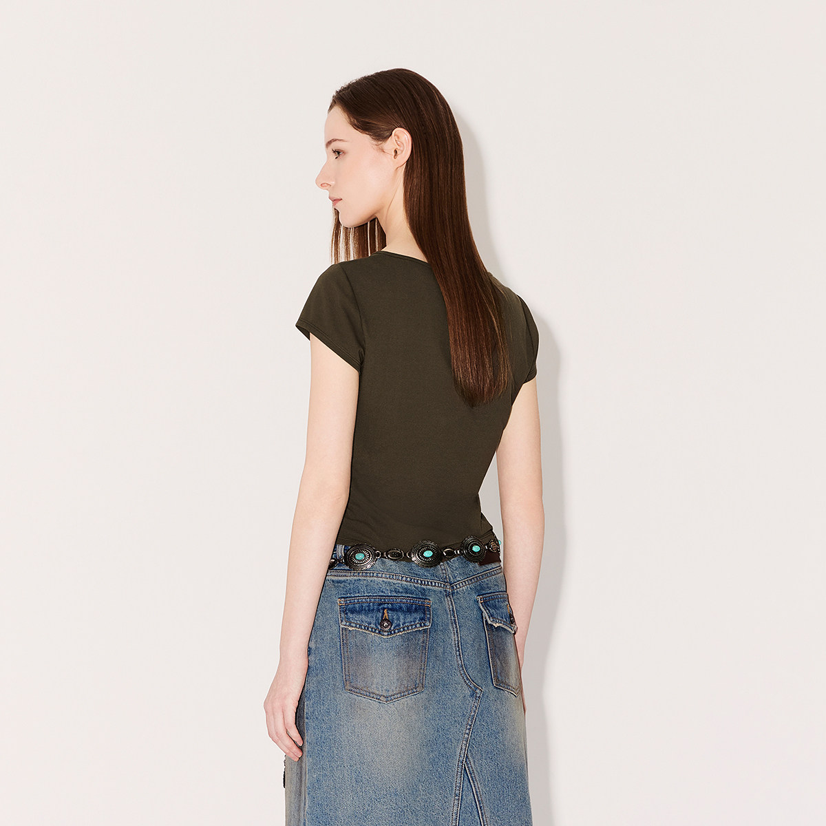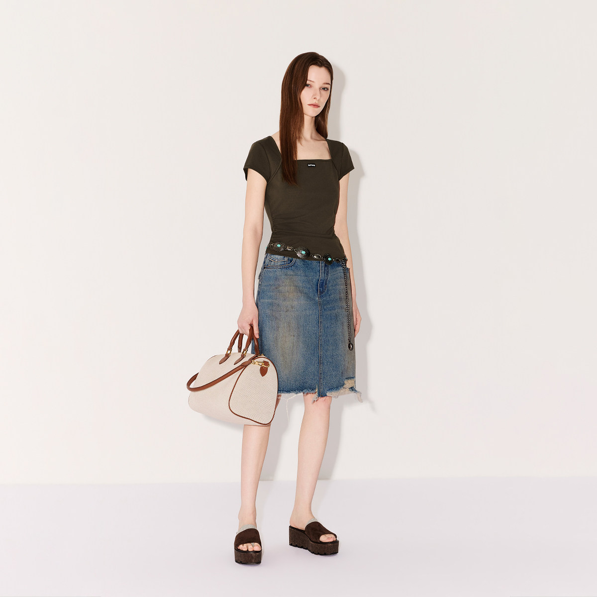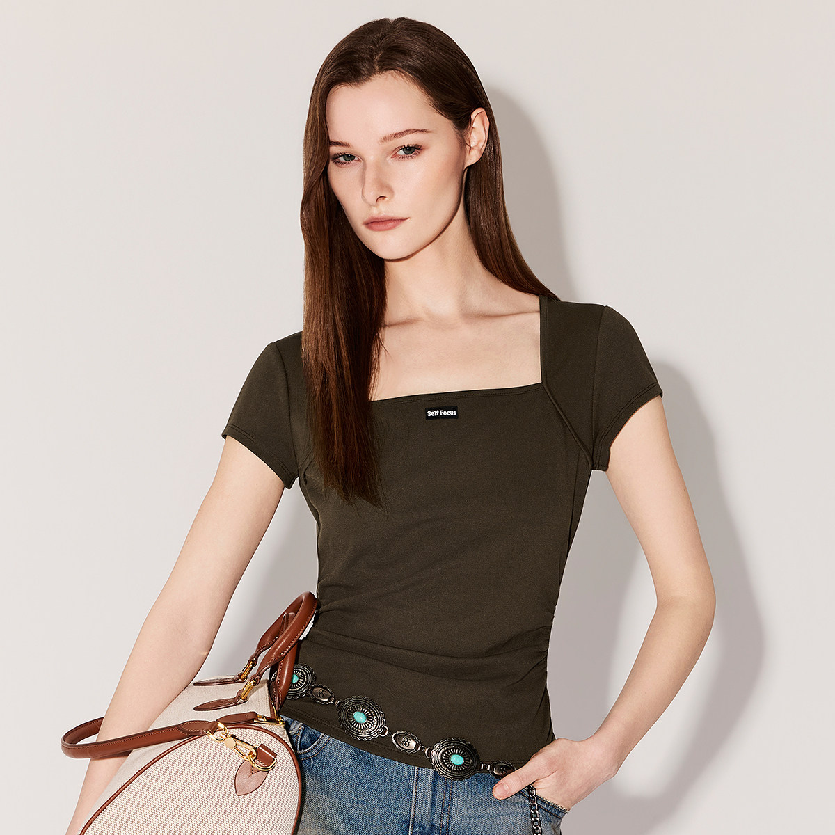 【新品】OCHIRLY欧时力 T恤2026春夏方领缩褶显瘦正肩 短袖短上衣