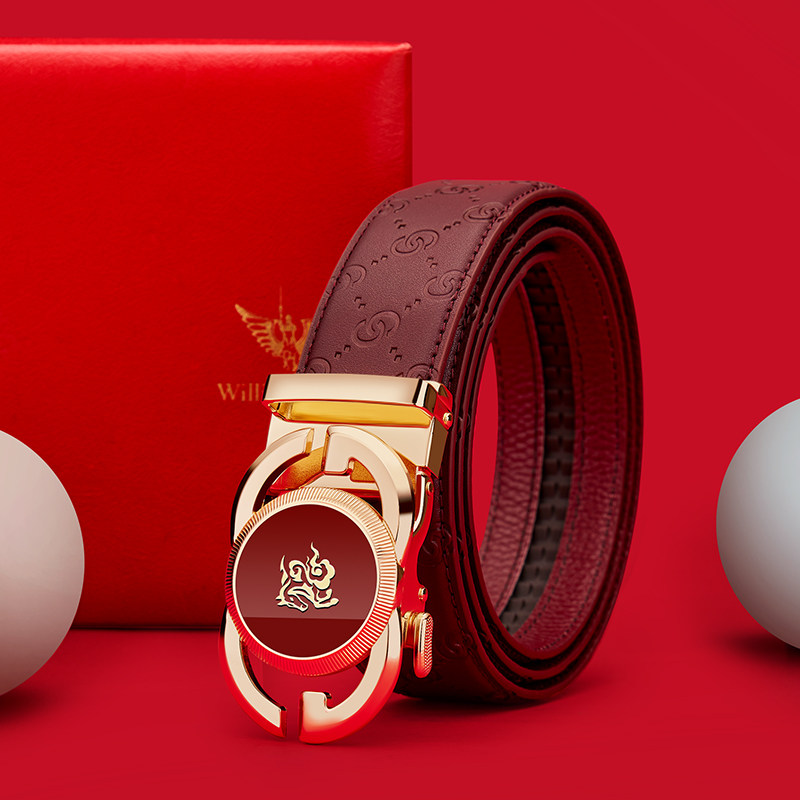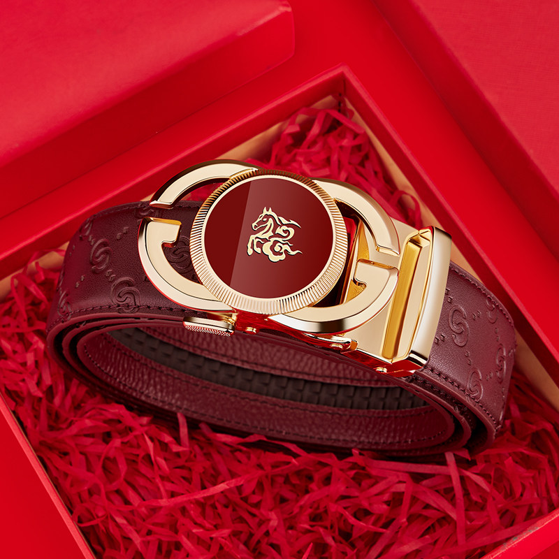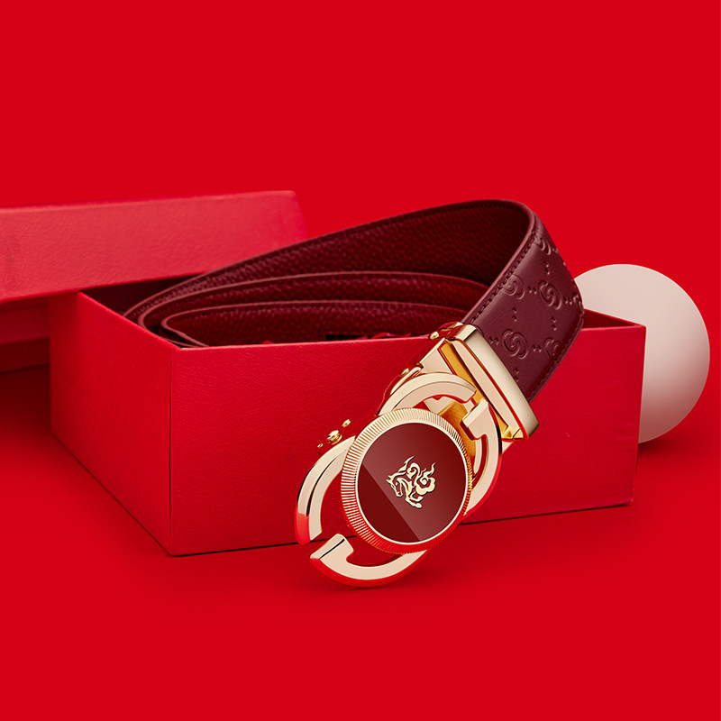 正品保罗皮带男2026年新款真皮本命年马年送礼结婚红色裤腰带高档