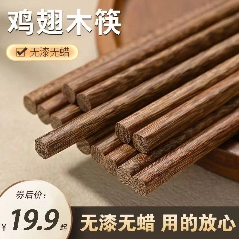 鸡翅木筷子家用2025新款高档抗菌防霉合金防滑耐高温餐具无漆原木