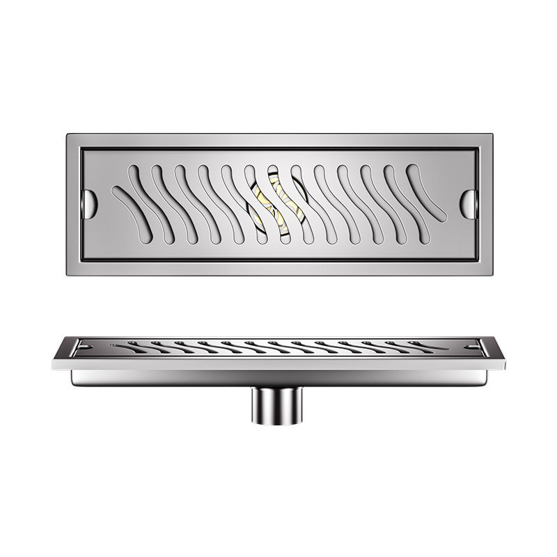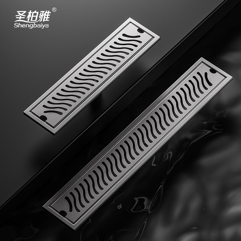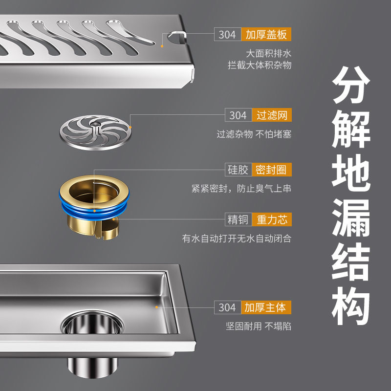卫生间镜面亮光304不锈钢加长款地漏 配铜翻版防臭芯长条地漏批发