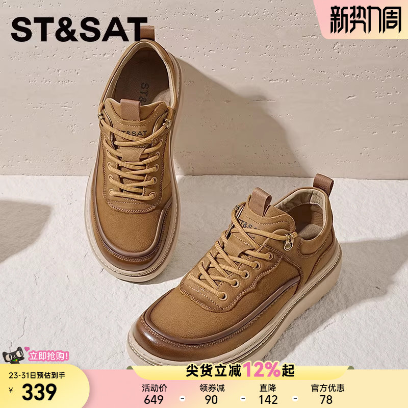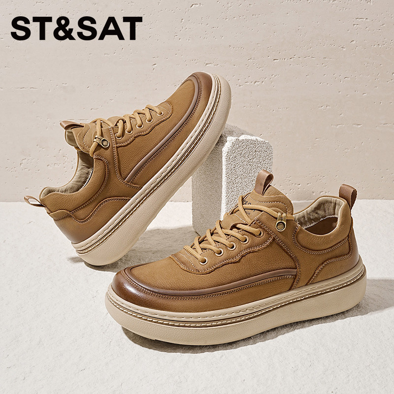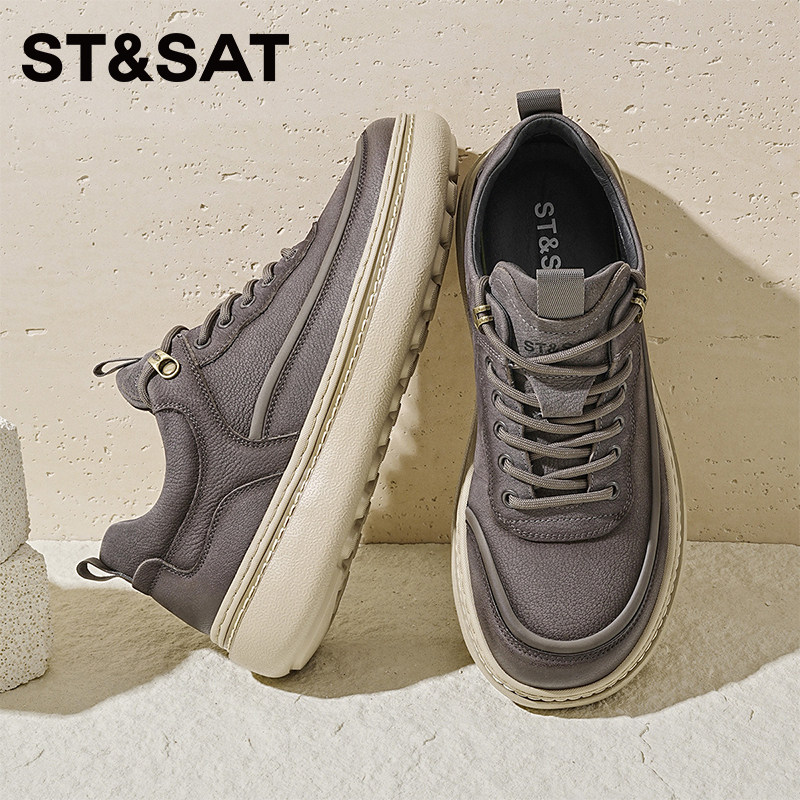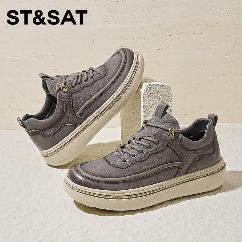 星期六男鞋秋新款牛皮厚底休闲板鞋男士休闲皮鞋增高软底休闲鞋男