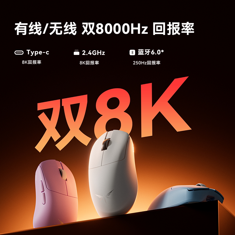 瓦尔基里VK M3有线/2.4G/蓝牙三模电竞鼠标8K无线接收器40g轻量化
