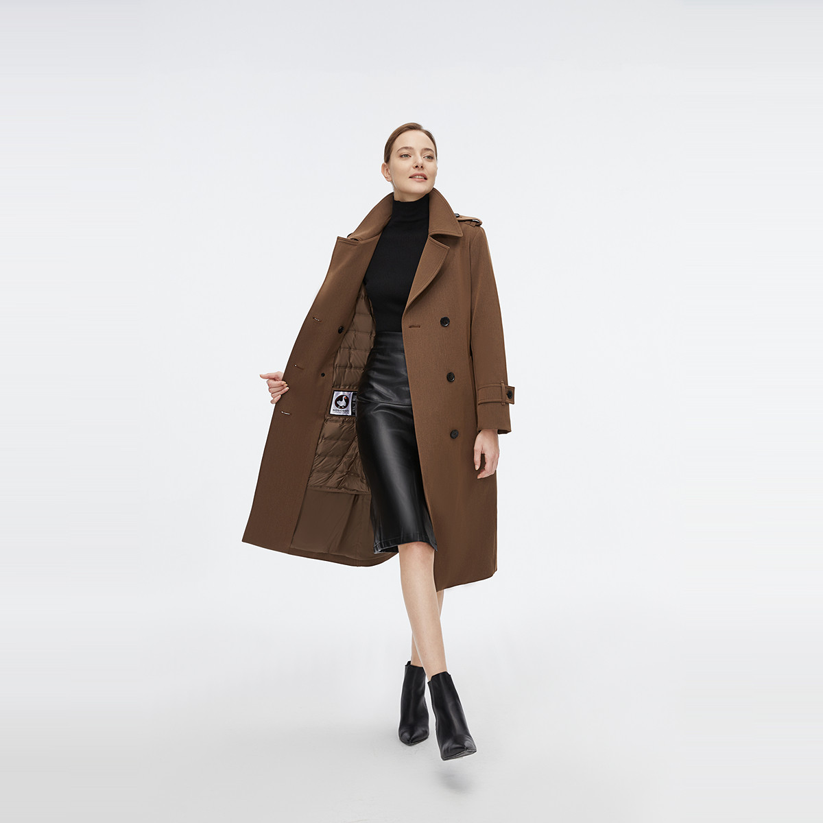 【鹅绒】波司登奥莱女士显瘦气质时尚潮流商务风衣厚羽绒服外套